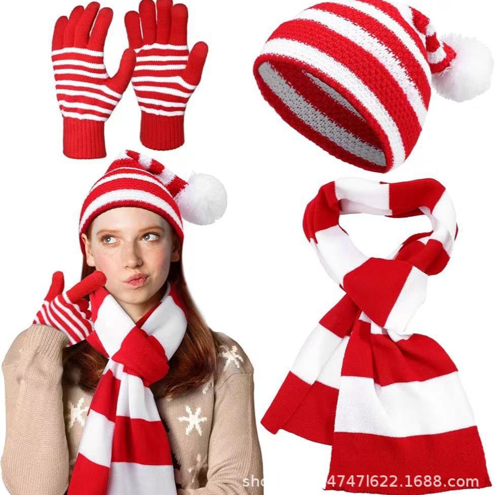 • 줄무늬 모자, 스카프, 장갑 3종 세트