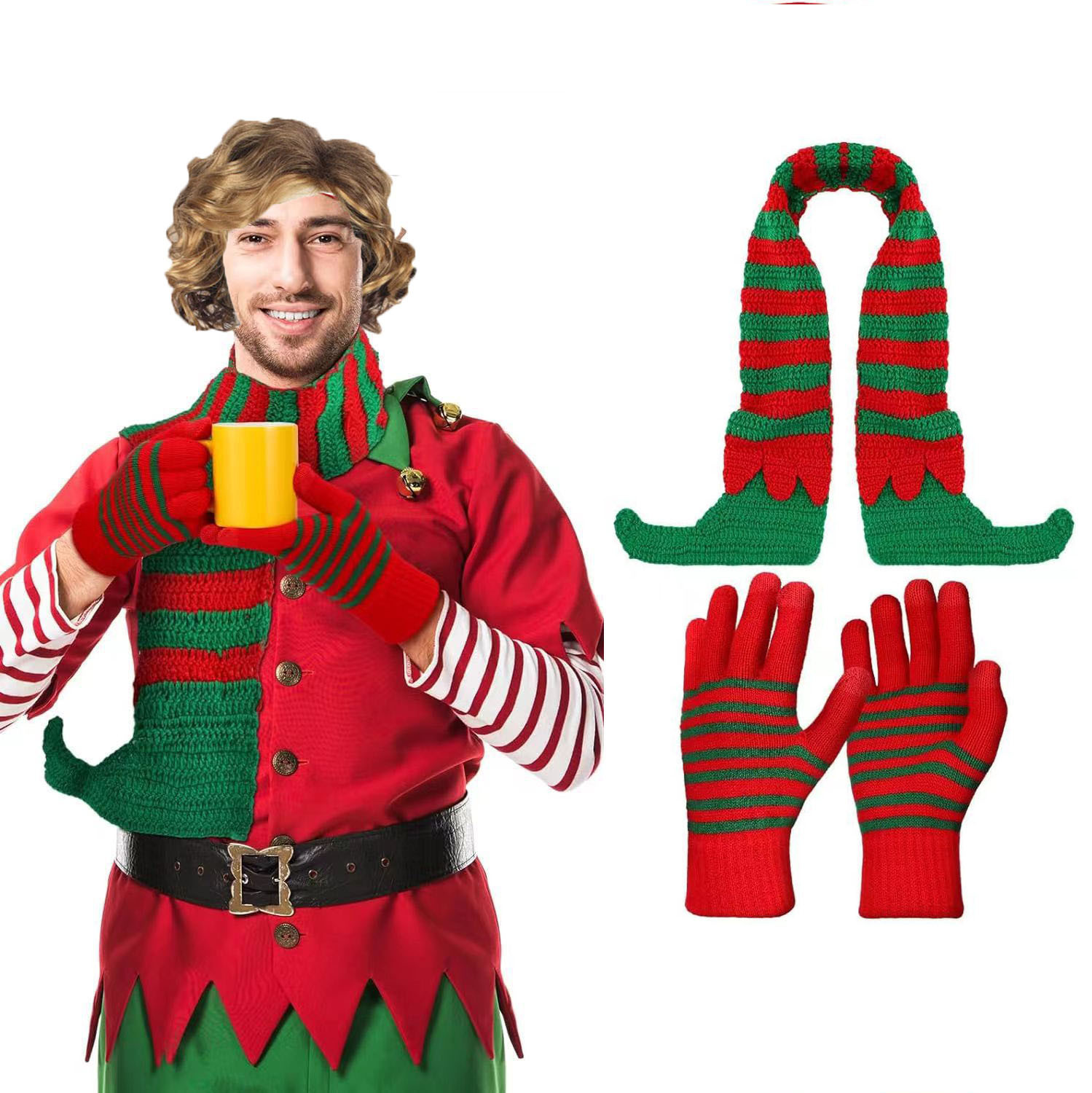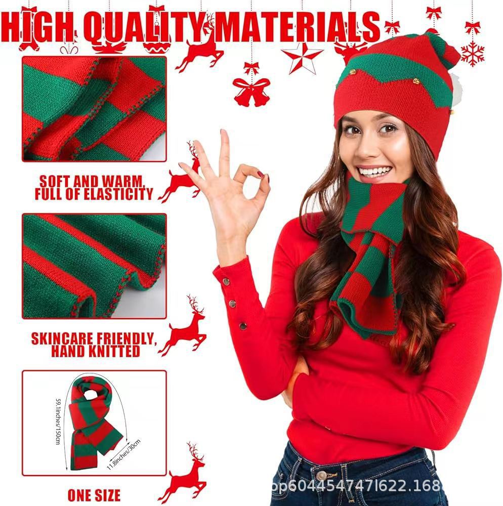• 빨간색과 녹색 스카프와 모자 투피스 세트