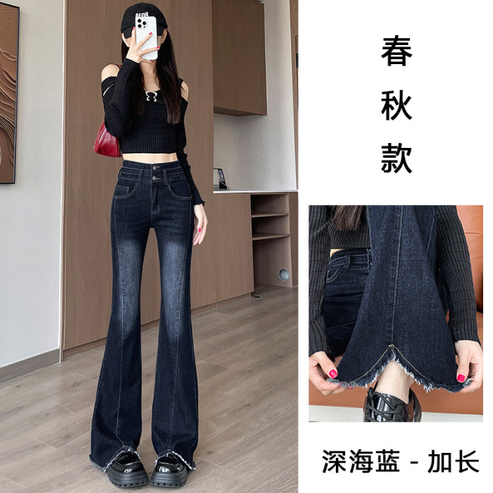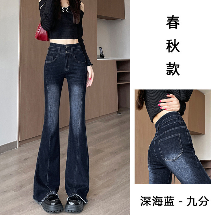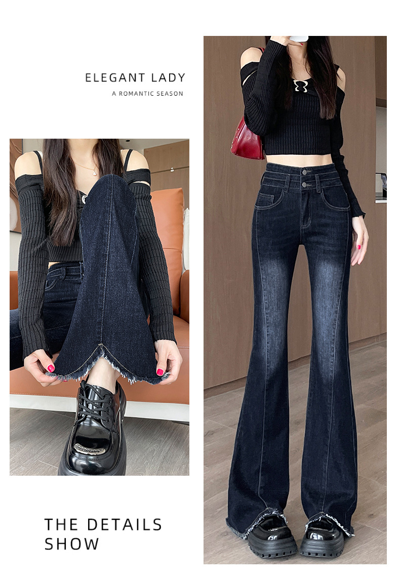 빈티지 마오 엣지 마이크로 청바지 여성의 2025 봄 새로운 하이 웨이스트 슬림 핏 슬리밍 말굽 플레어 팬츠