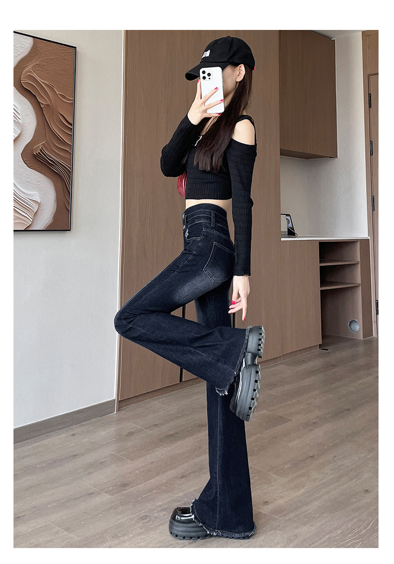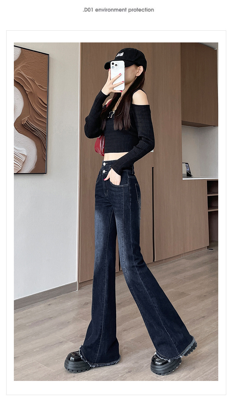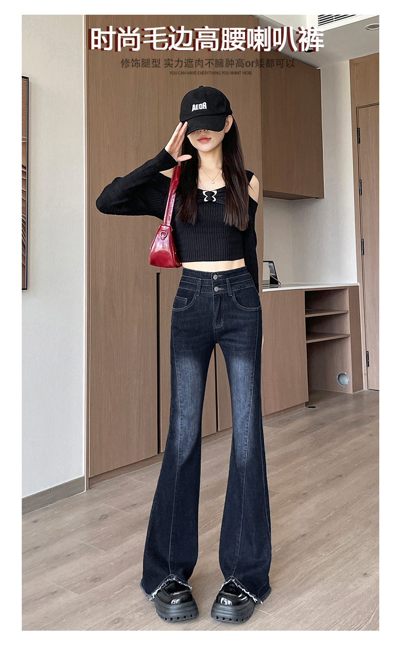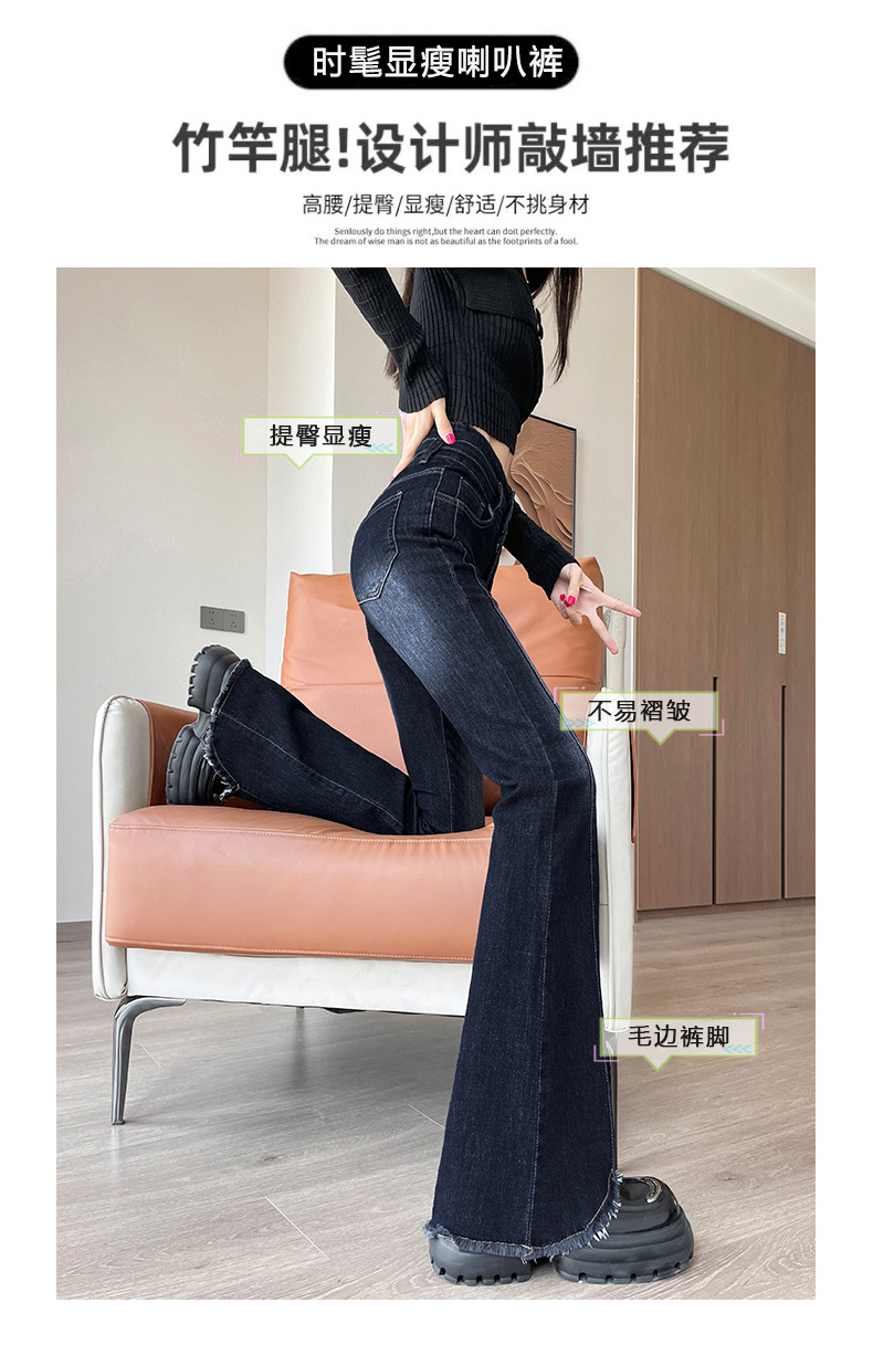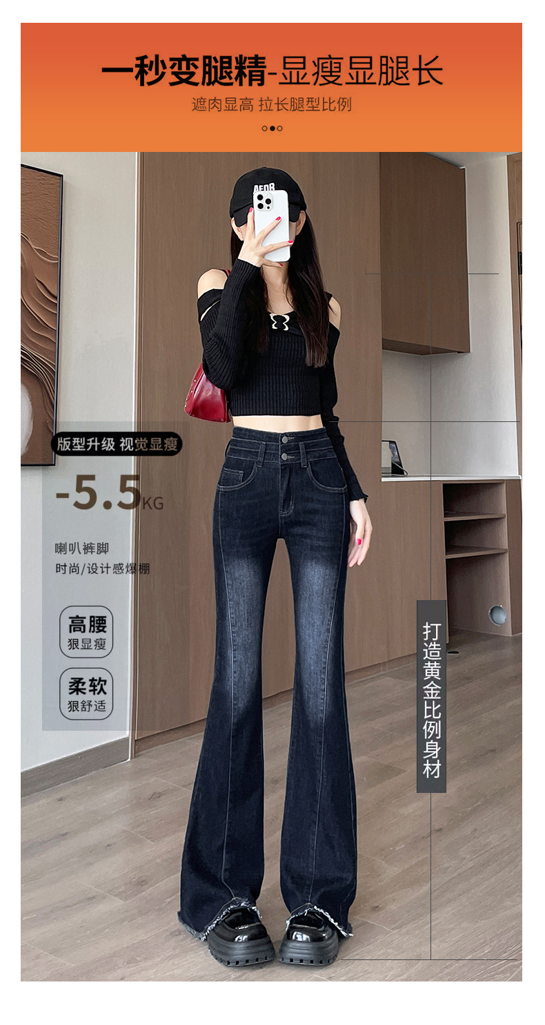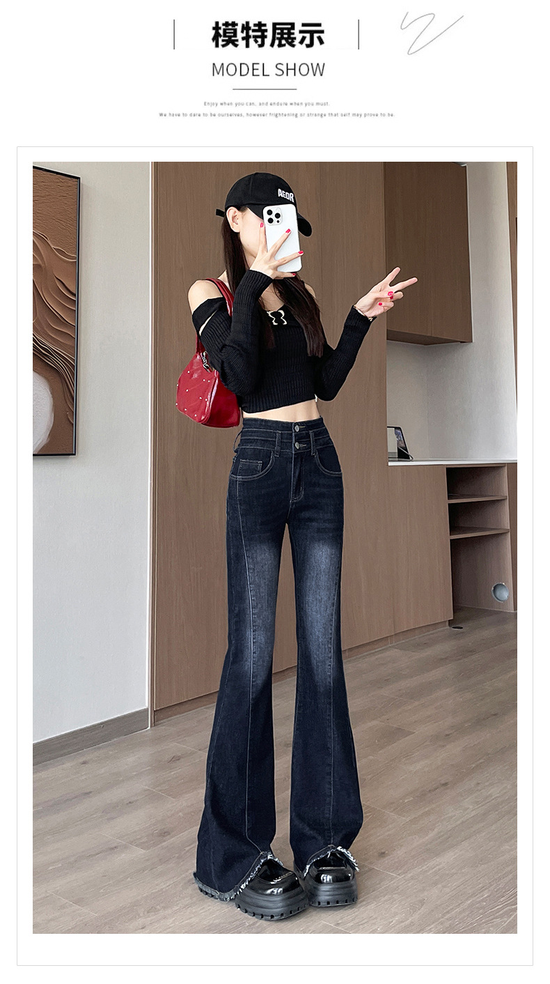 빈티지 마오 엣지 마이크로 청바지 여성의 2025 봄 새로운 하이 웨이스트 슬림 핏 슬리밍 말굽 플레어 팬츠스토어 가기