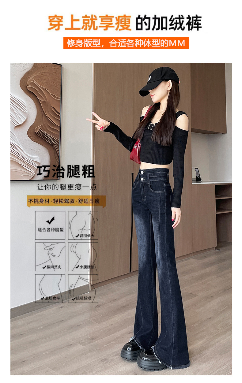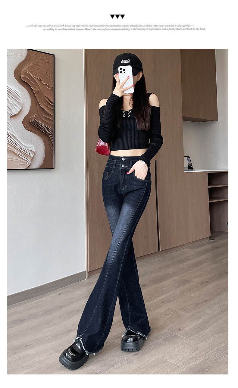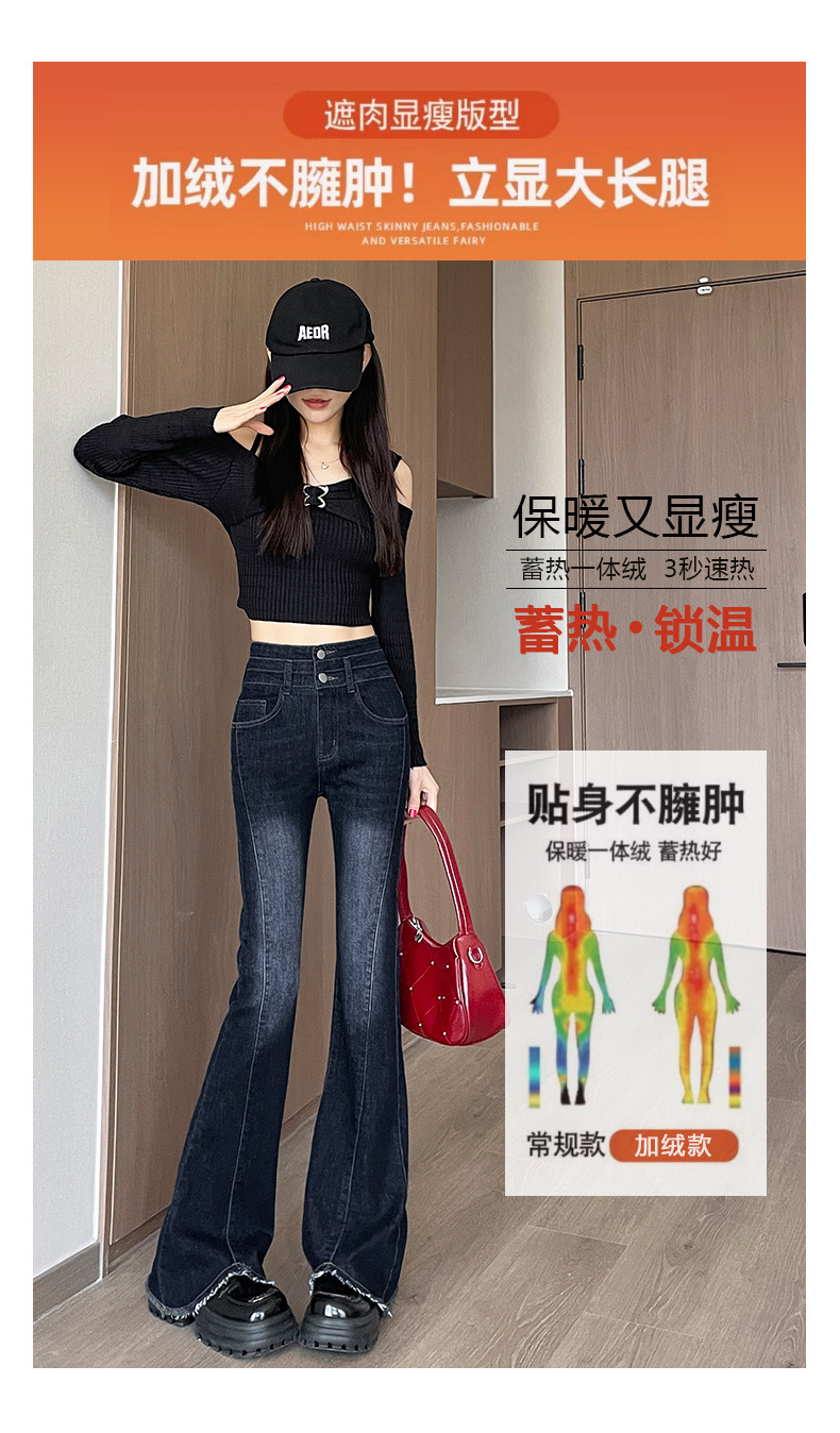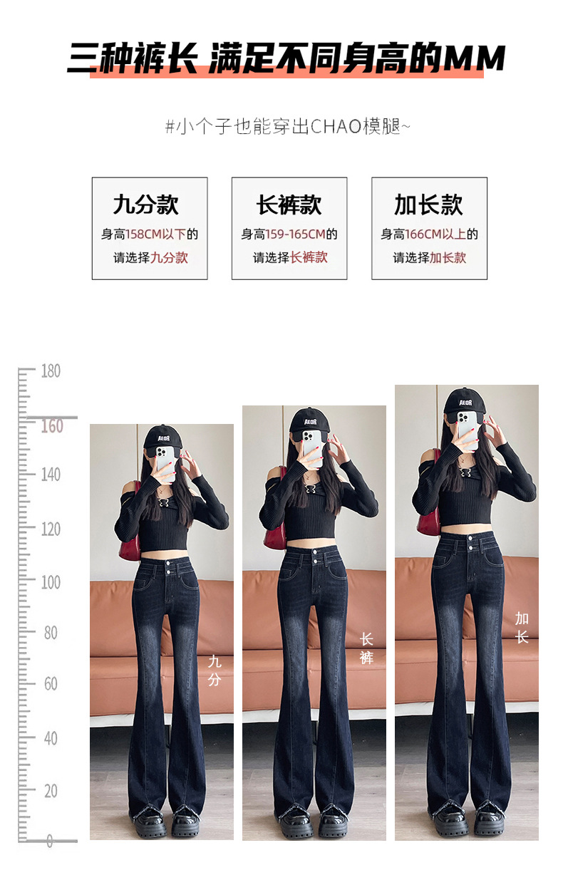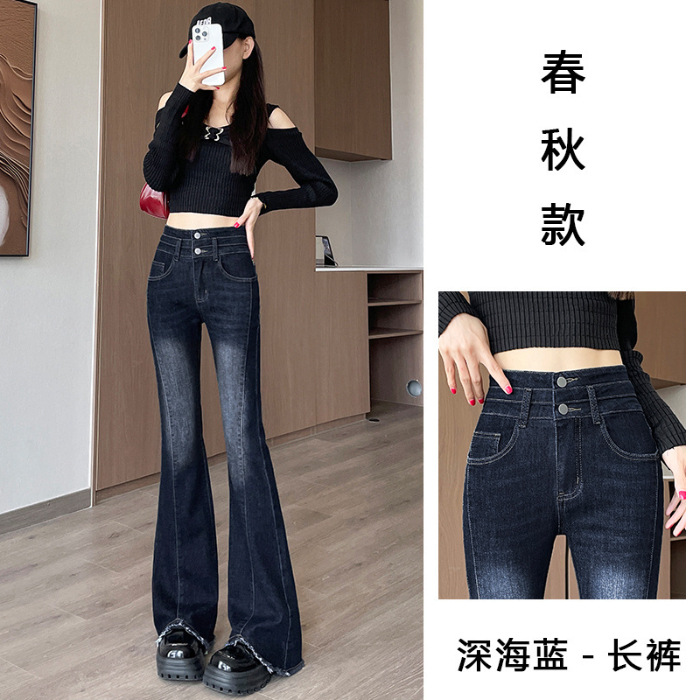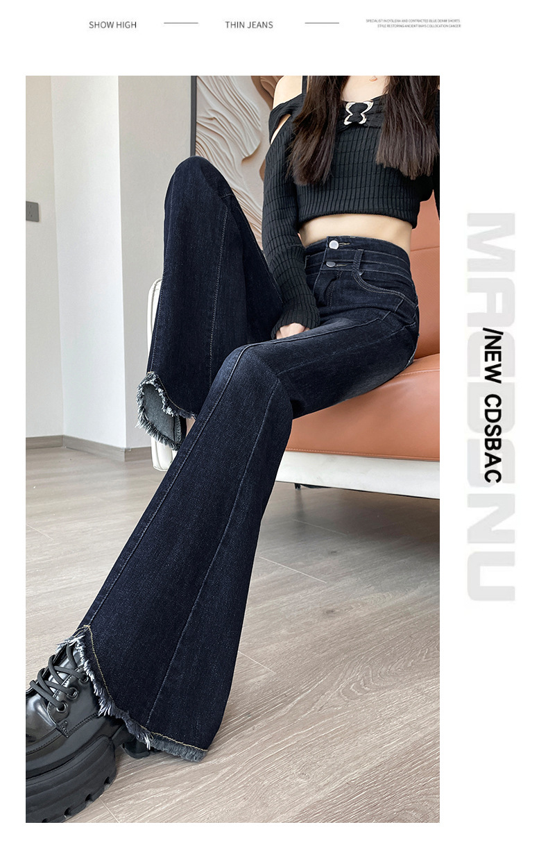 빈티지 마오 엣지 마이크로 청바지 여성의 2025 봄 새로운 하이 웨이스트 슬림 핏 슬리밍 말굽 플레어 팬츠스토어 가기