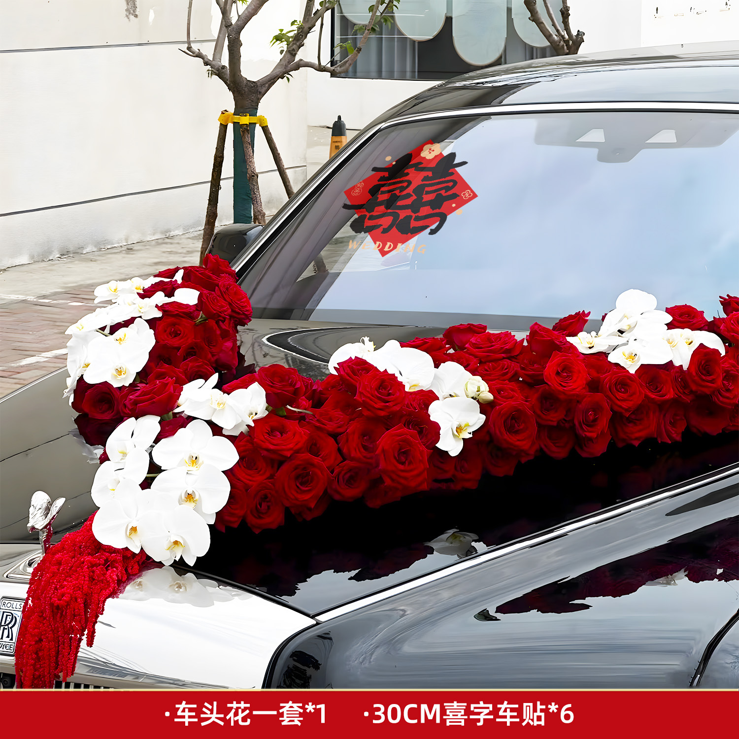 웨딩 2024 전체 세트 시뮬레이션 꽃 웨딩 자동차 도어 도어 핸들 장식 메인 웨딩 카 풀 꽃 자동차 프론트 새로운 팀 꽃스토어 가기