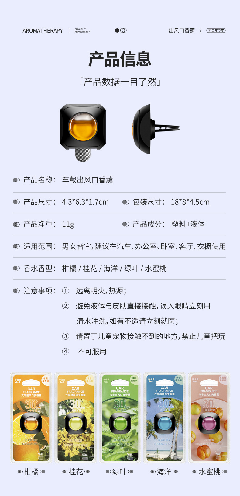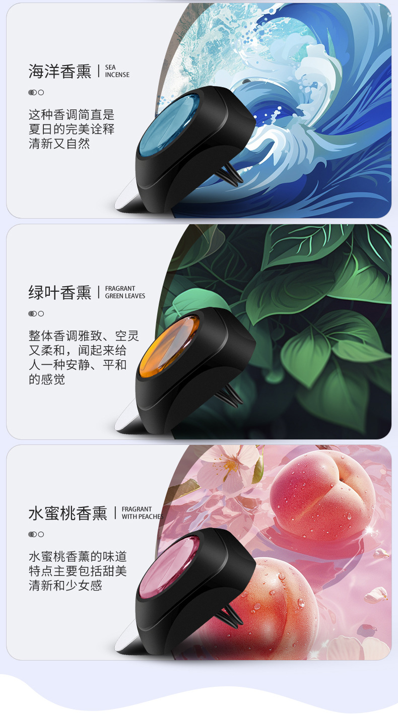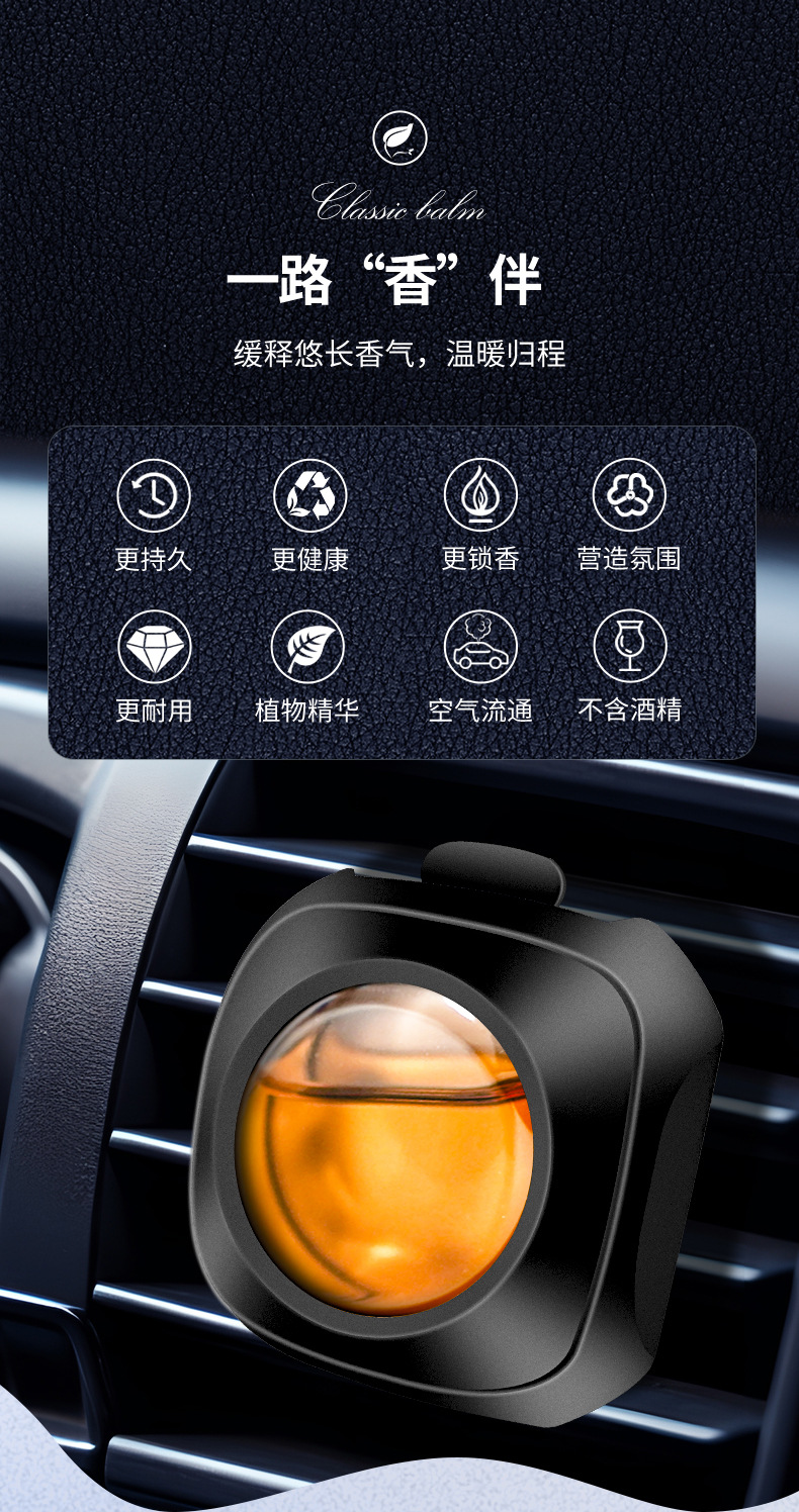 【产品特点】:小巧精致,可随处安放,家车两用,多种香味可选。
