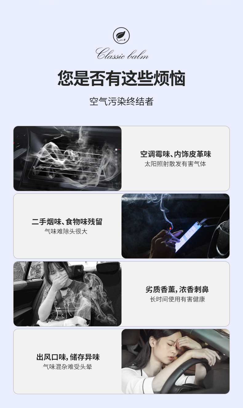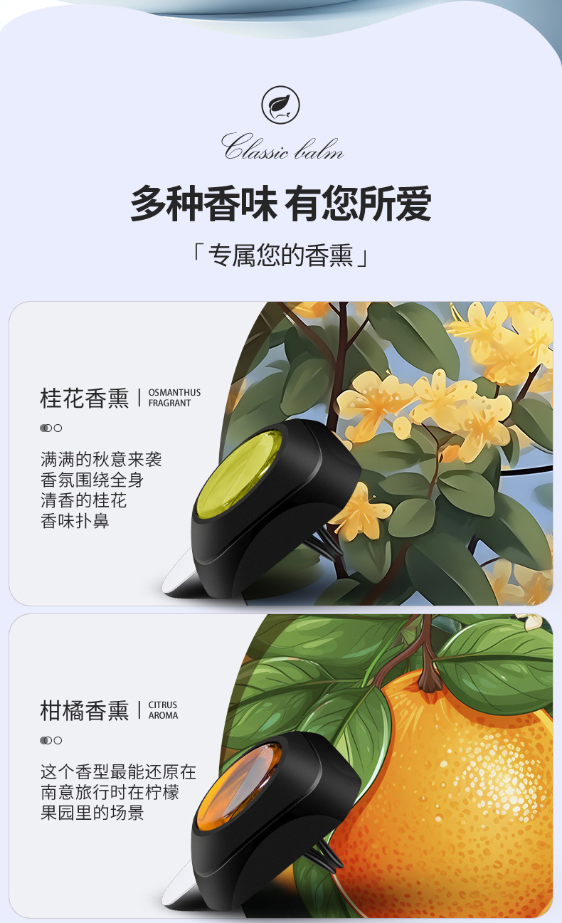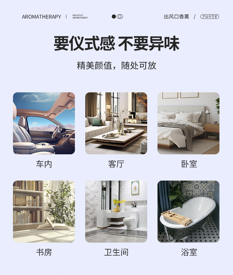 【产品特点】:小巧精致,可随处安放,家车两用,多种香味可选。