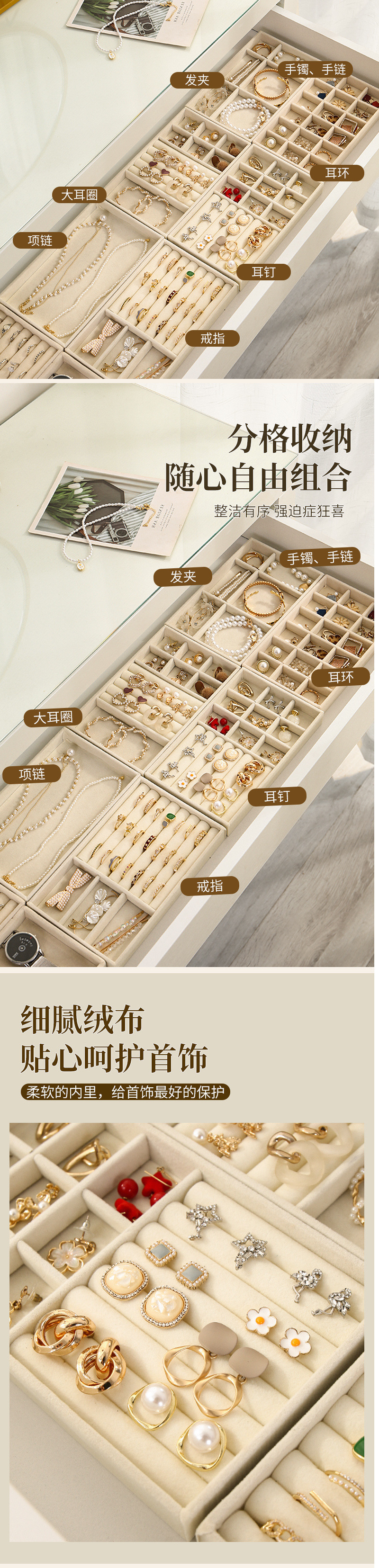 보석 저장 서랍 트레이 플란넬 디스플레이 플레이트 고급 절묘한 대용량 링 귀걸이 목걸이 보관 상자