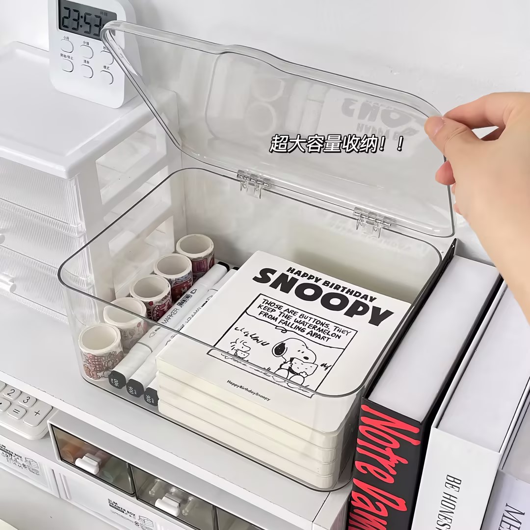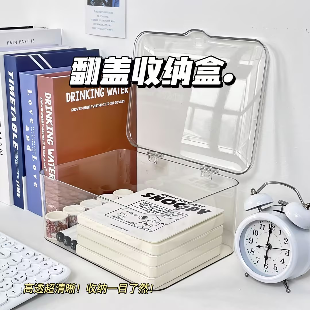 투명한 아크릴 대용량 데스크탑 저장 상자 뚜껑 플립 데스크 잡화 문구 책 마무리 저장 Waugh