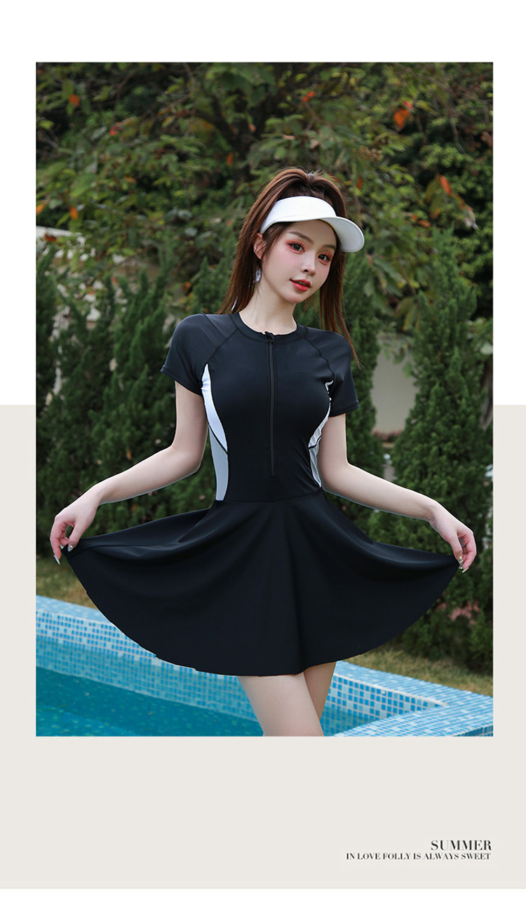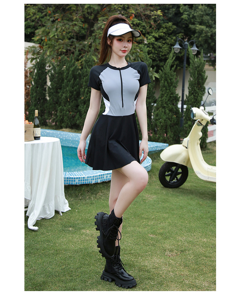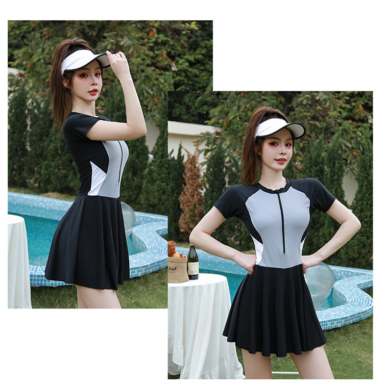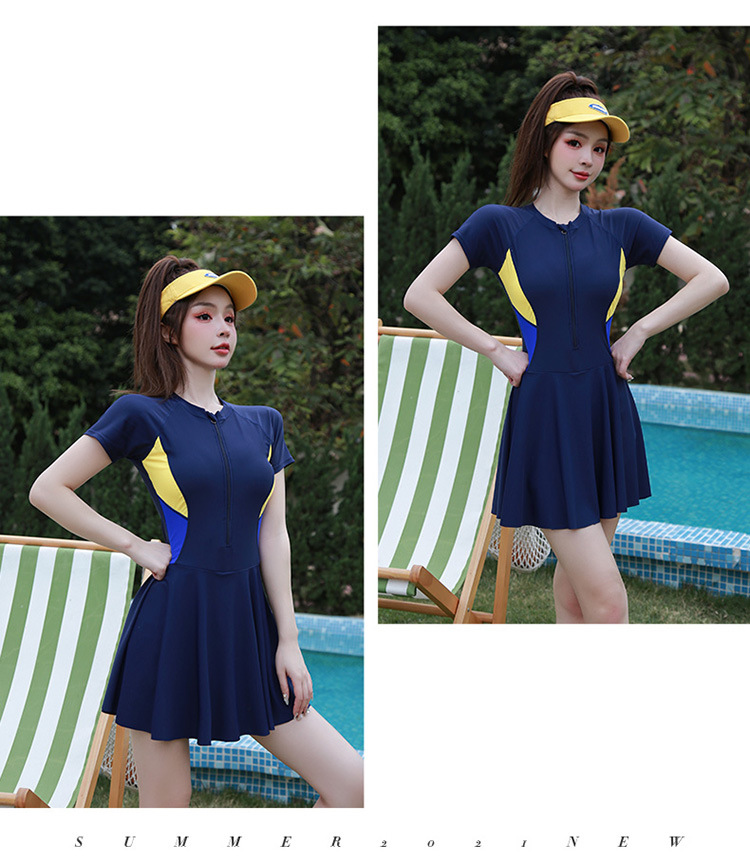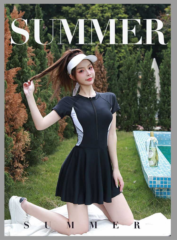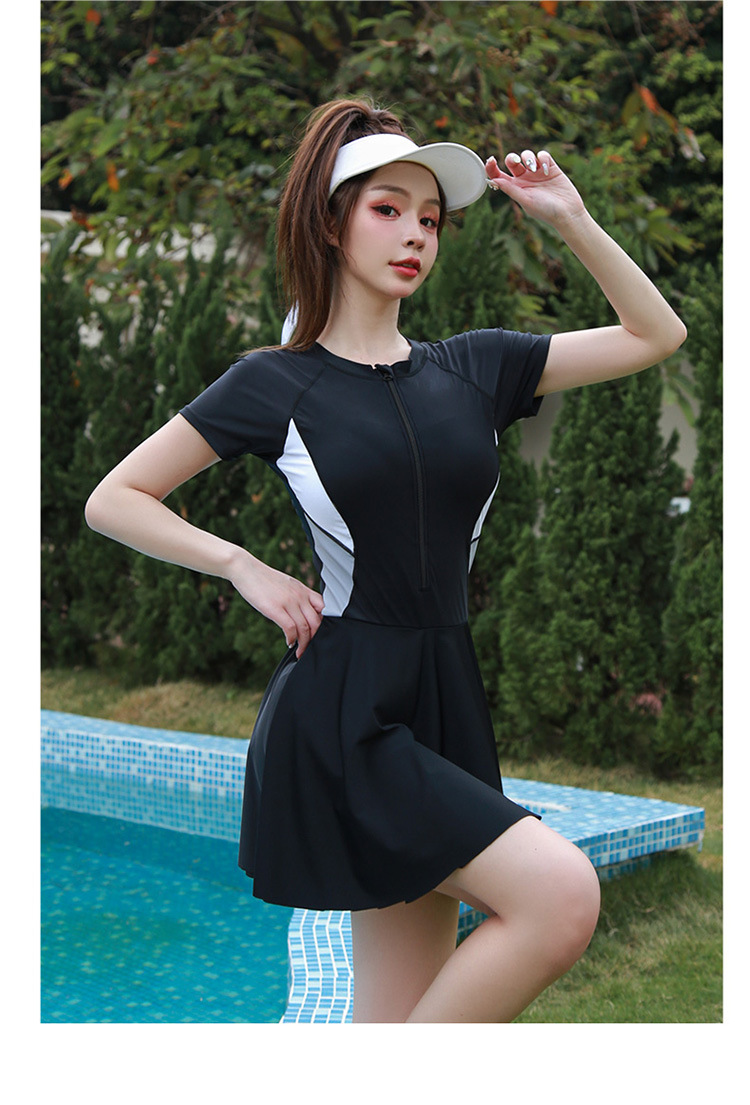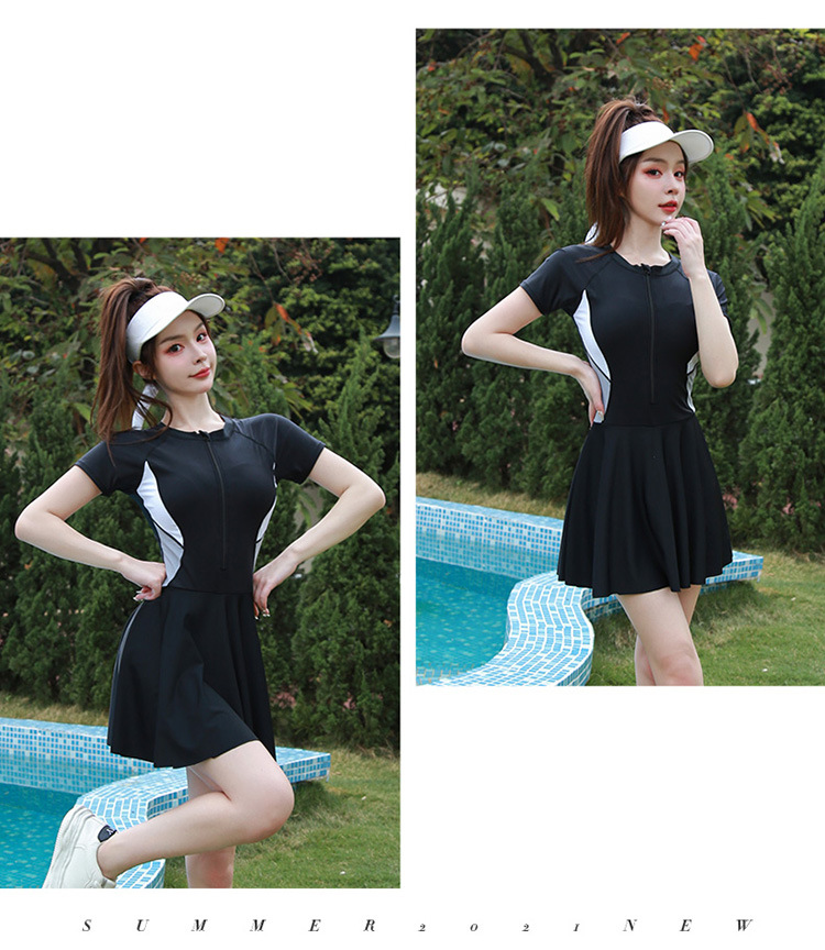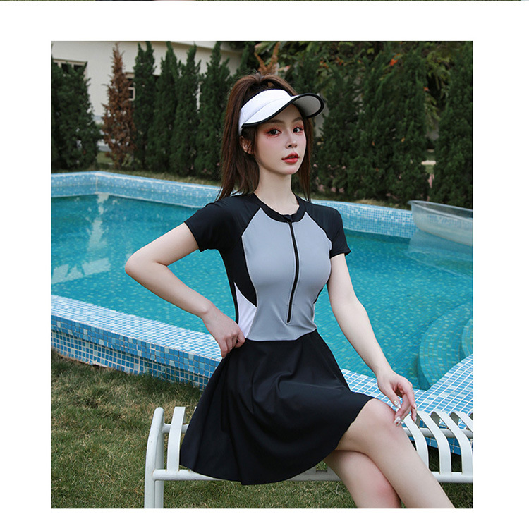 반팔 보수적 슬림핏 슬림핏 수영복 여성 스포츠 스타일 지방 플러스 사이즈 지퍼 서핑 다이빙 세트스토어 가기