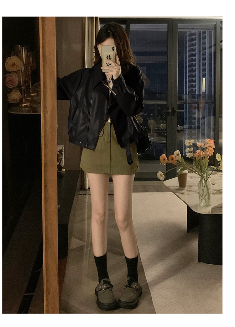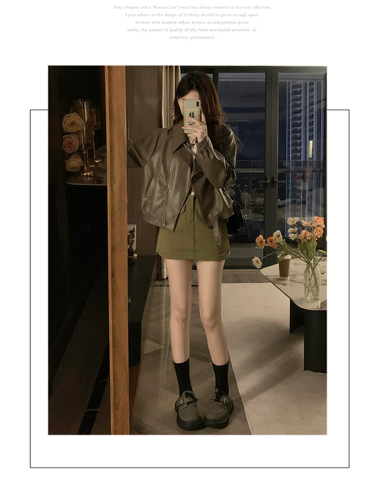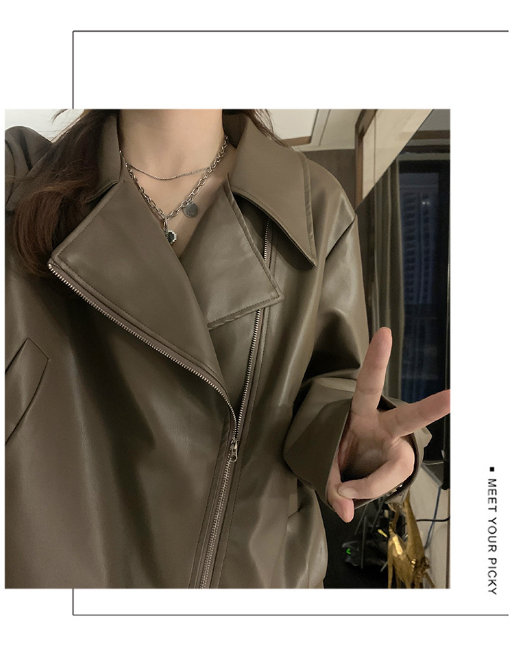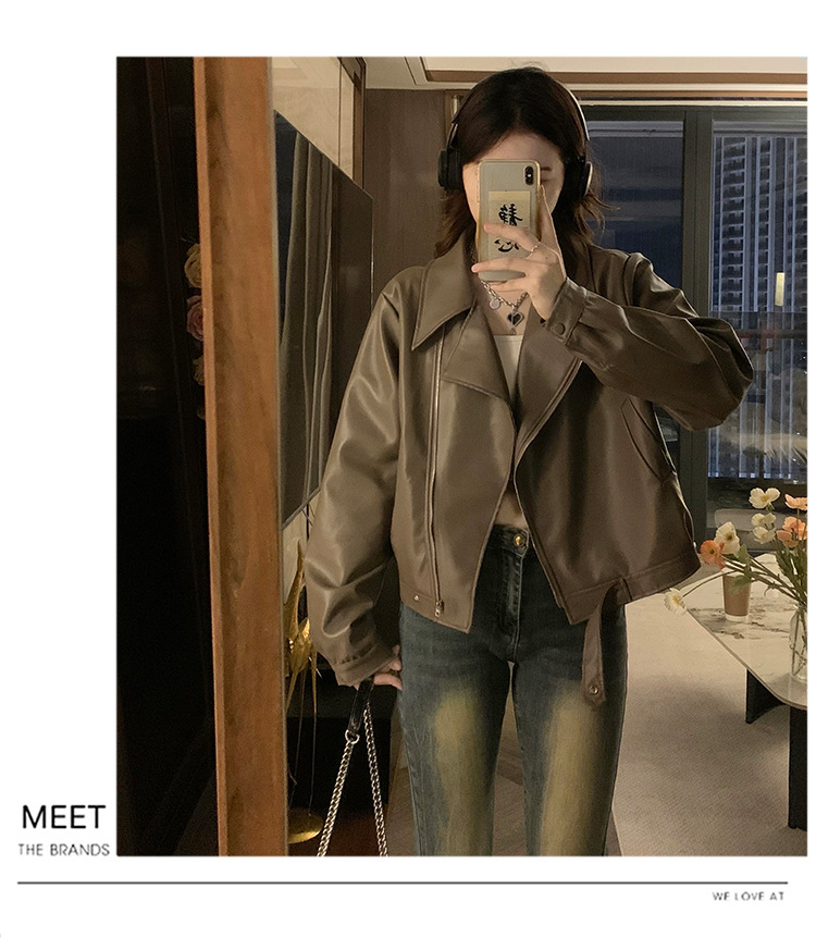 Maillard 미국 빈티지 다크 브라운 PU 가죽 자켓 여성의 2024 초가을 바이커 자켓 짧은 재킷 트렌디스토어 가기