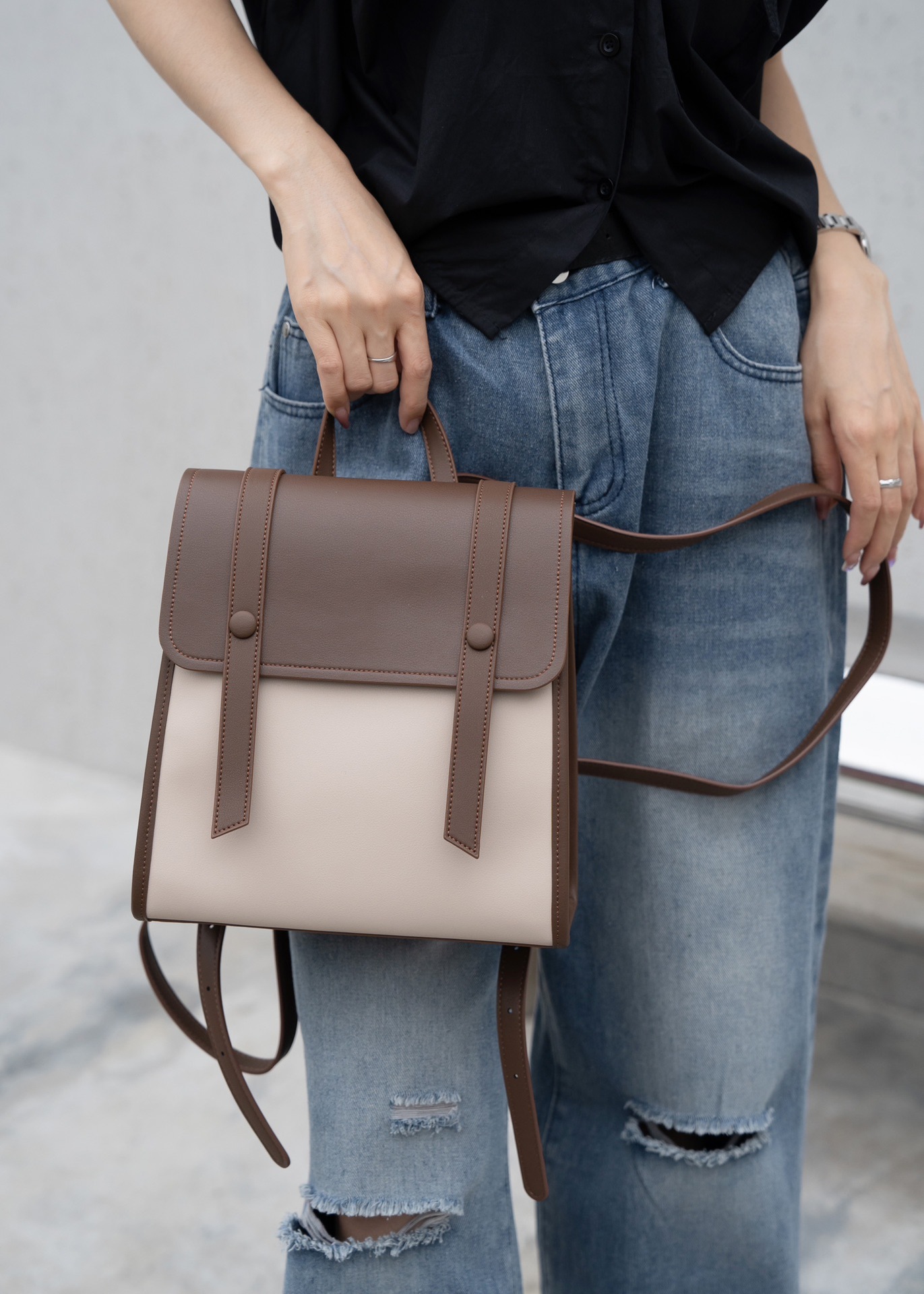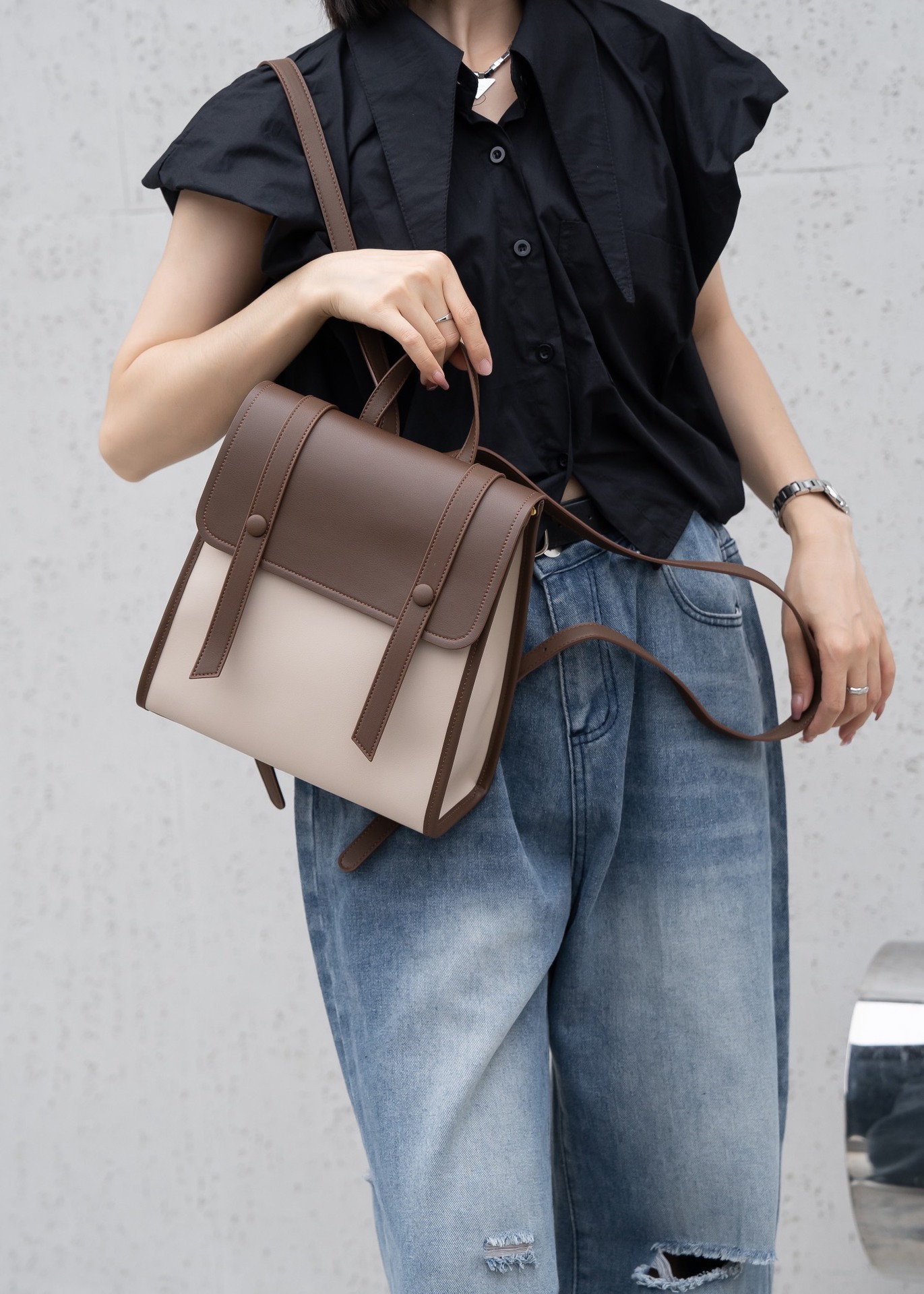 정품 가죽 백팩 2025 여름 신상 소녀 패션 캐주얼 스타일리시 미니 백팩 이중 가죽 백팩스토어 가기