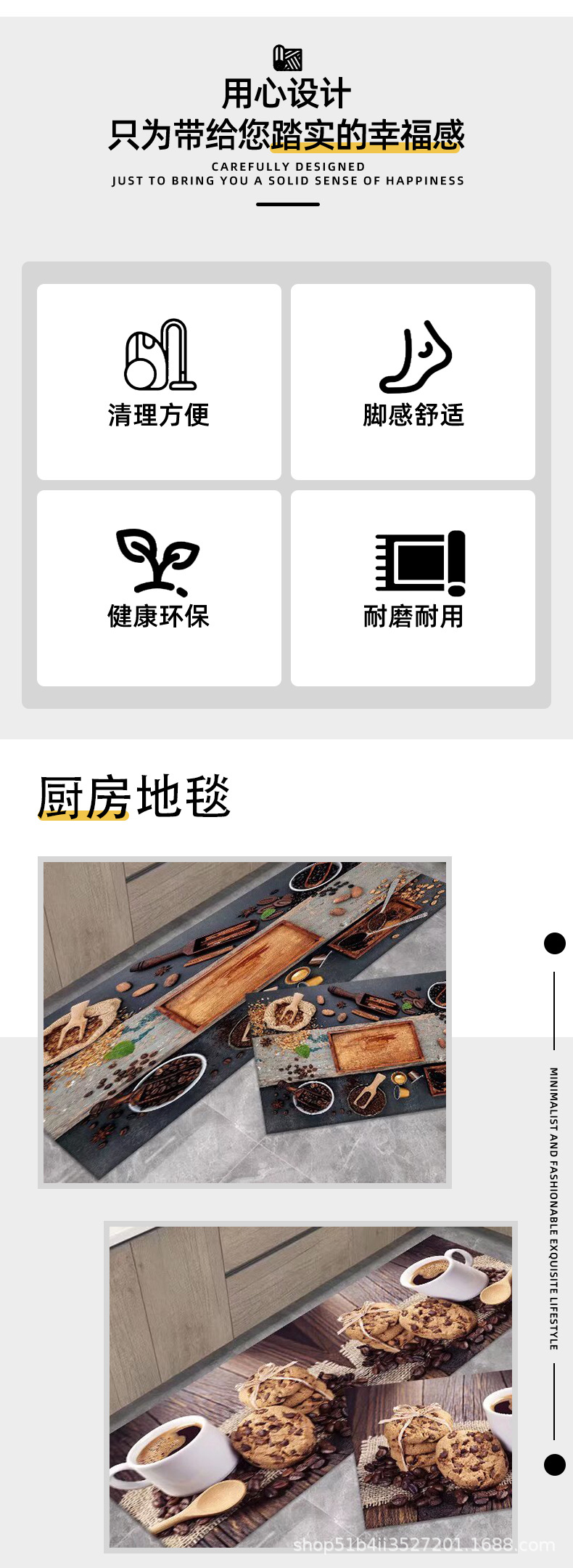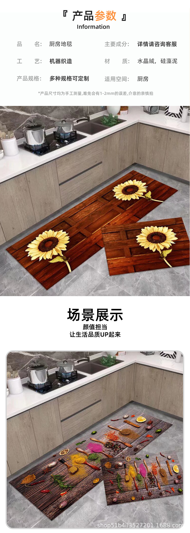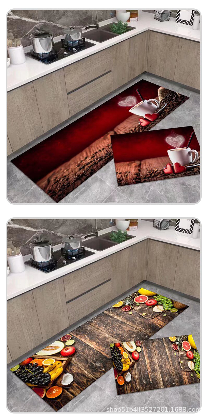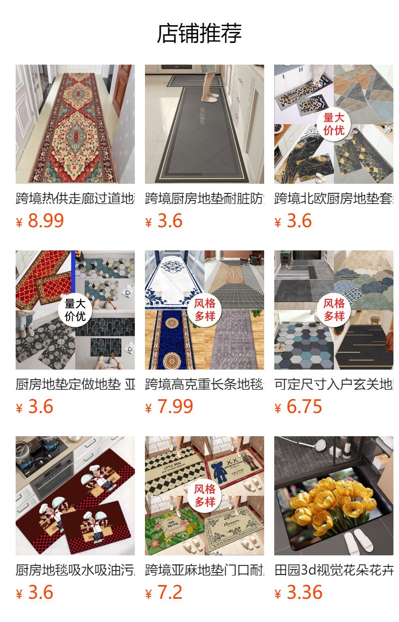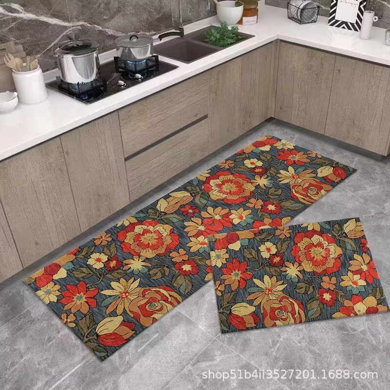 크로스보더 주방 흡수 카펫 수출용 크리스탈 벨벳 실리콘 바닥 매트 오염 방지 미끄럼 방지 매트 세트 규조토 매트스토어 가기