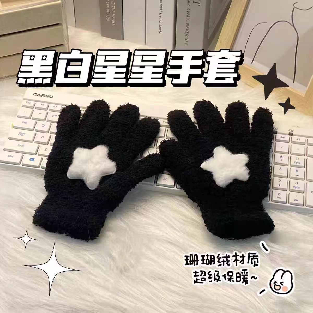 2024 새로운 귀여운 한국 스타 봉제 장갑 여성의 가을과 겨울 기모 따뜻한 학생 야외 사이클링 부동액스토어 가기