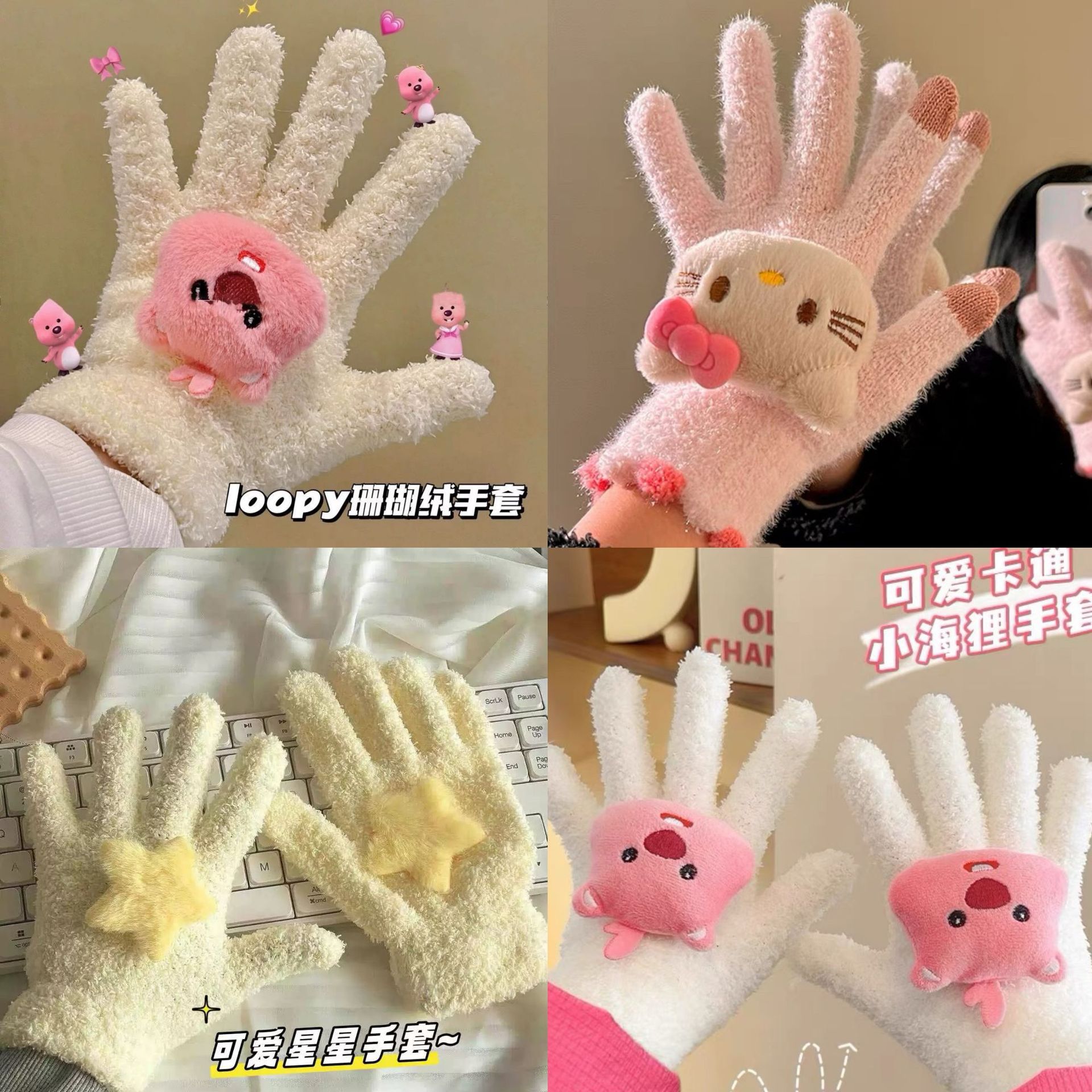 새로운 귀여운 작은 비버 봉제 장갑 코랄 양털 학생 손가락 타기 만화 남녀 장갑 겨울 따뜻한