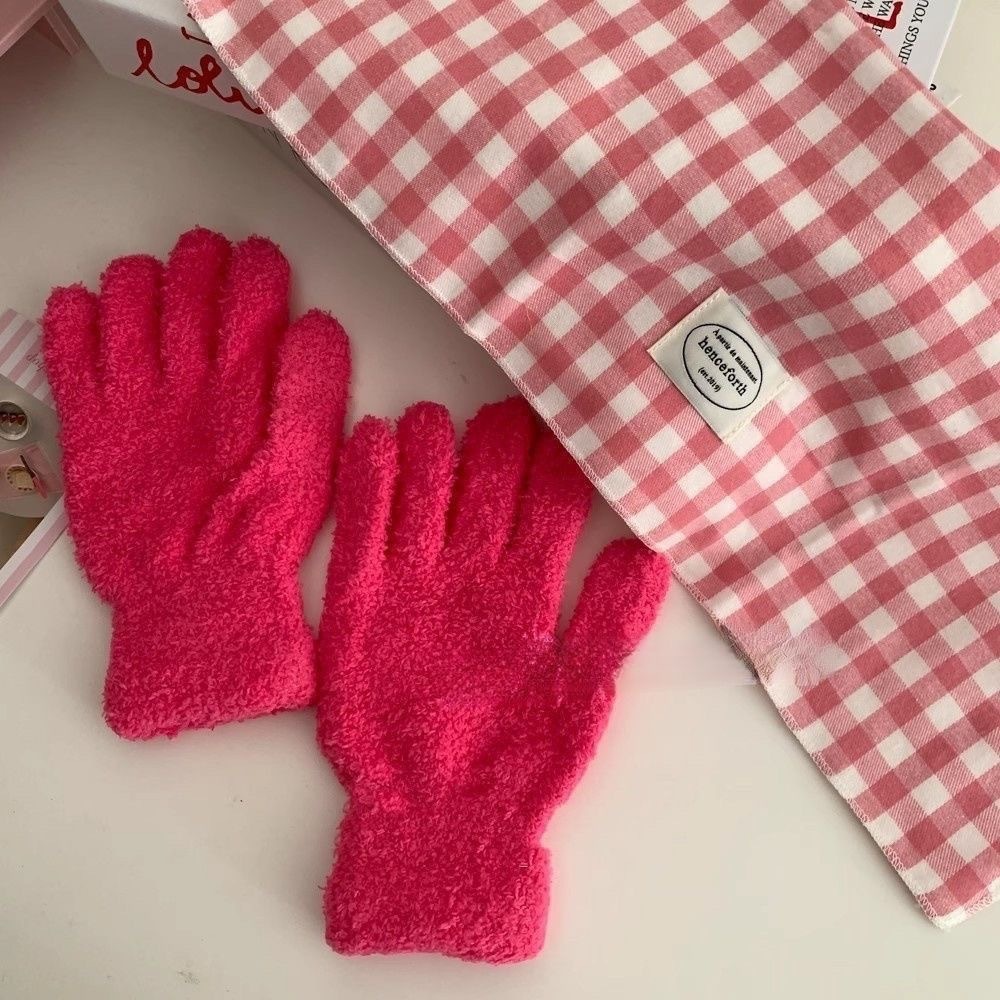 • 핑크색 단색 따뜻한 장갑(1쌍)