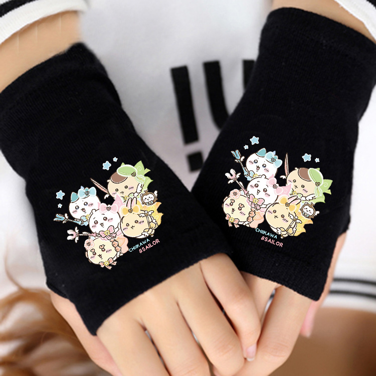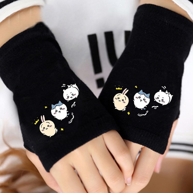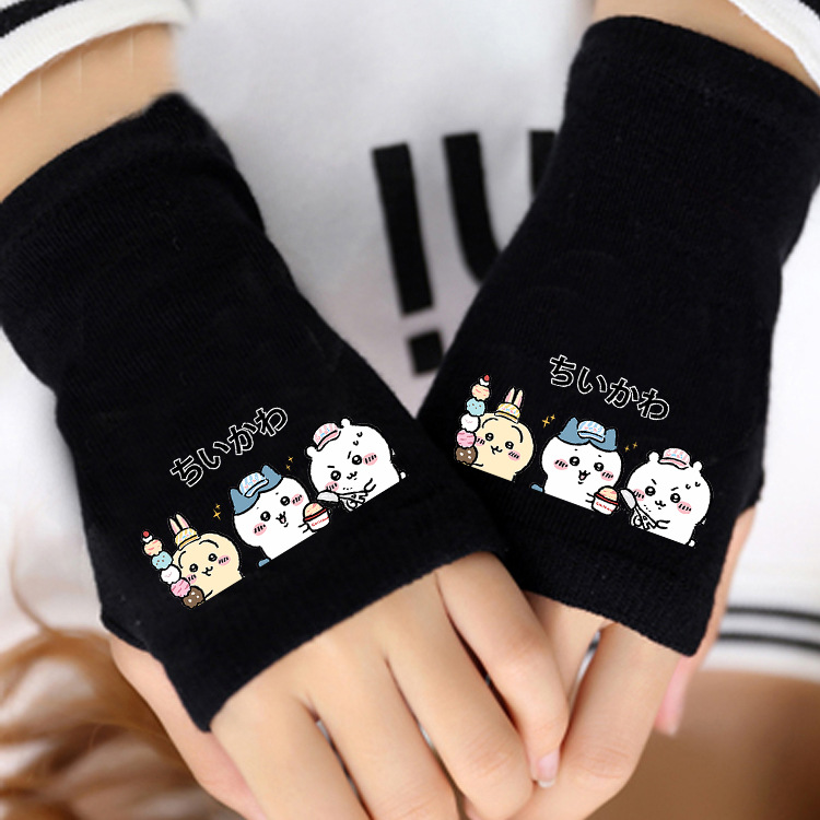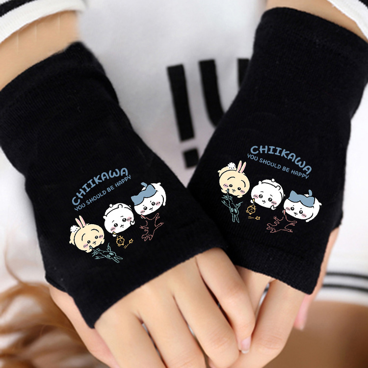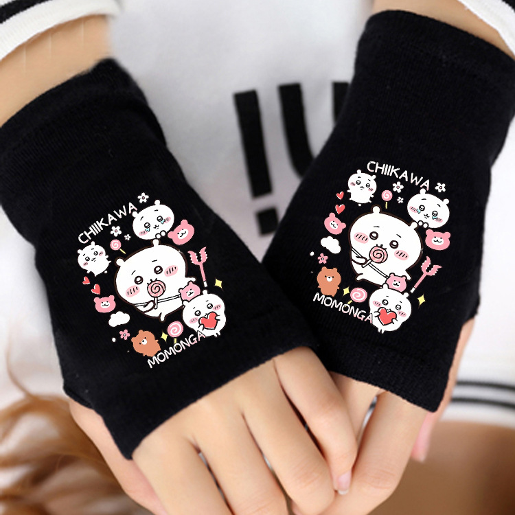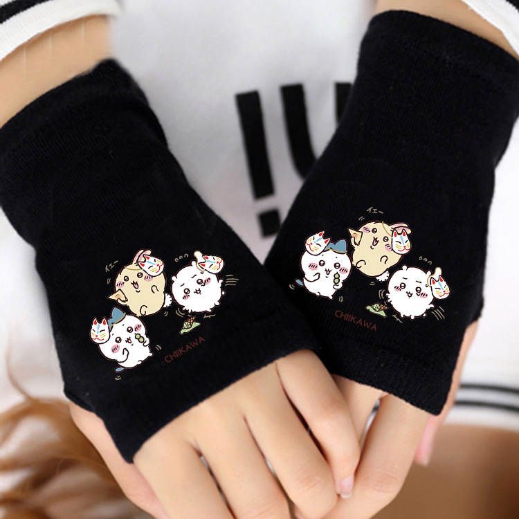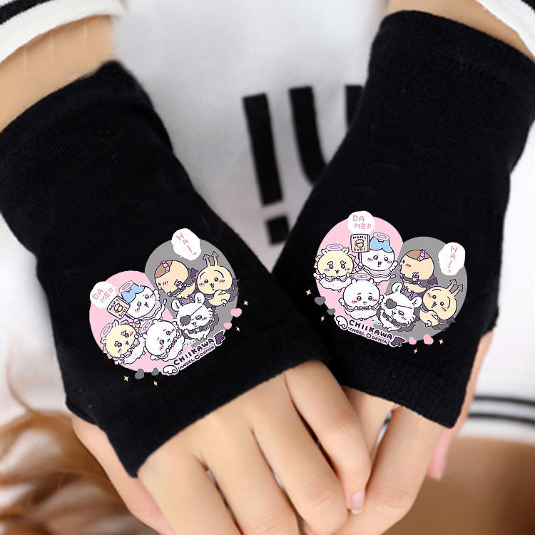 애니메이션 주변 상품 남녀 어린이용 보온 두꺼운 야외용 작은 팔 보온 장갑 남녀 학생 반손가락 장갑 겨울용