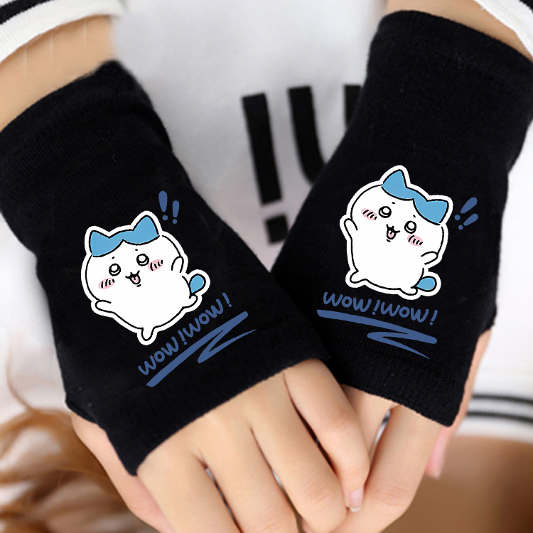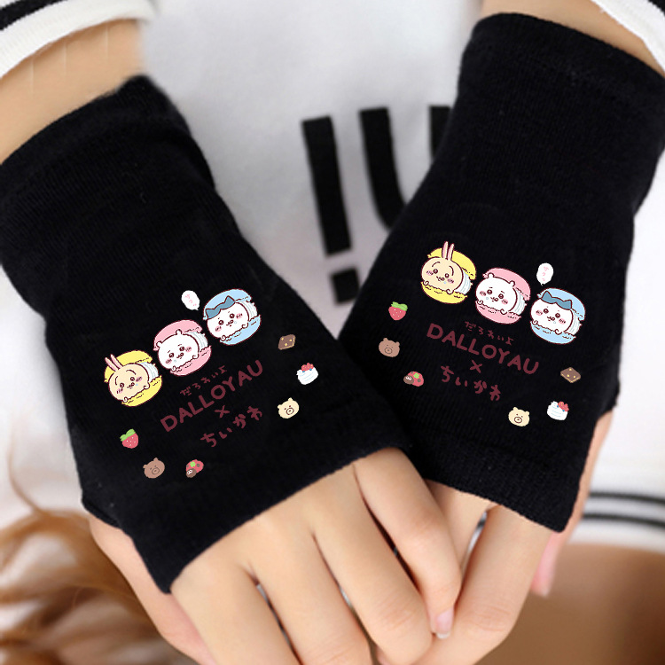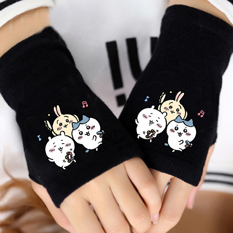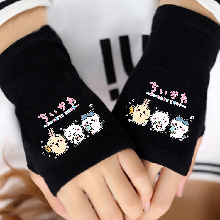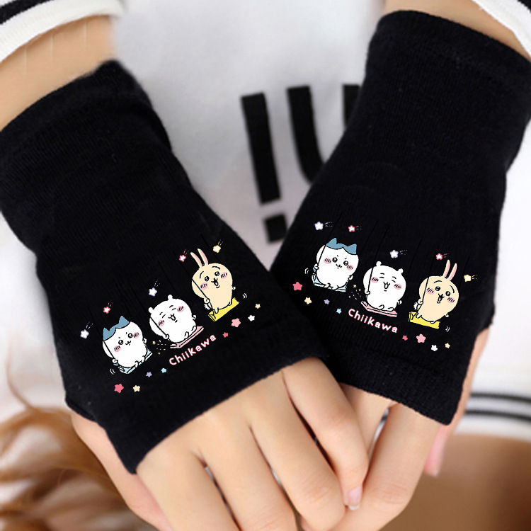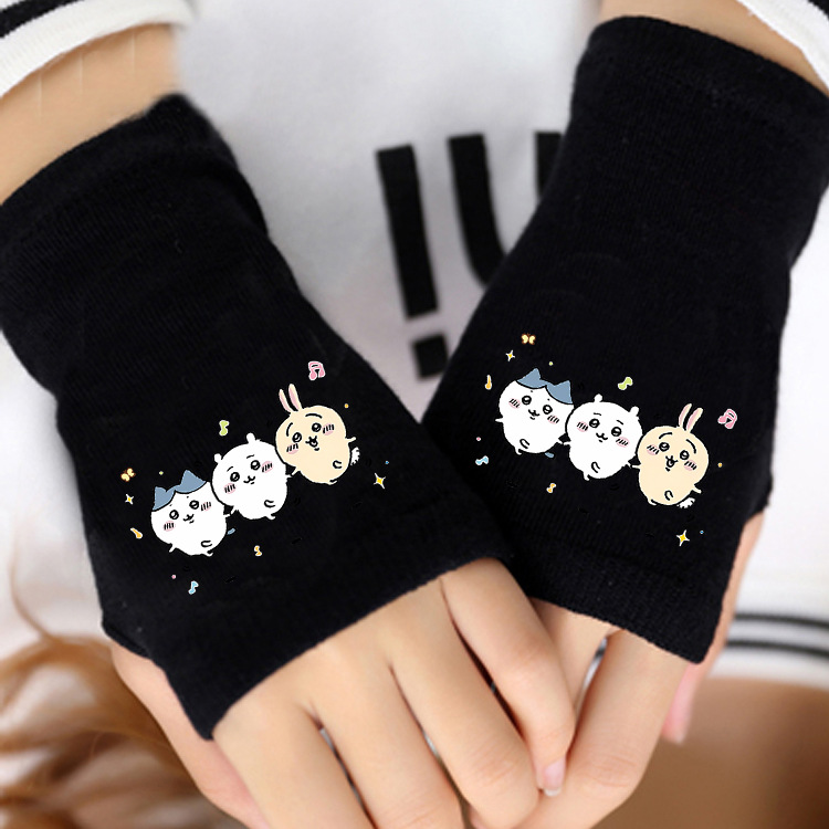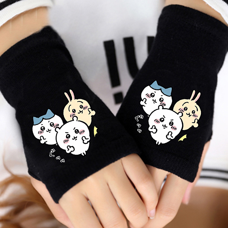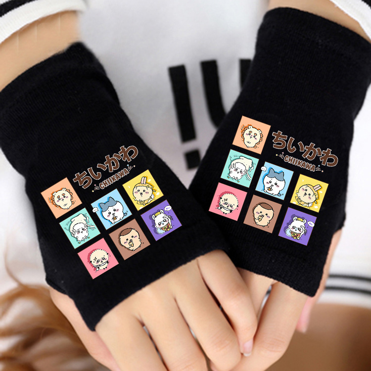 애니메이션 주변 상품 남녀 어린이용 보온 두꺼운 야외용 작은 팔 보온 장갑 남녀 학생 반손가락 장갑 겨울용