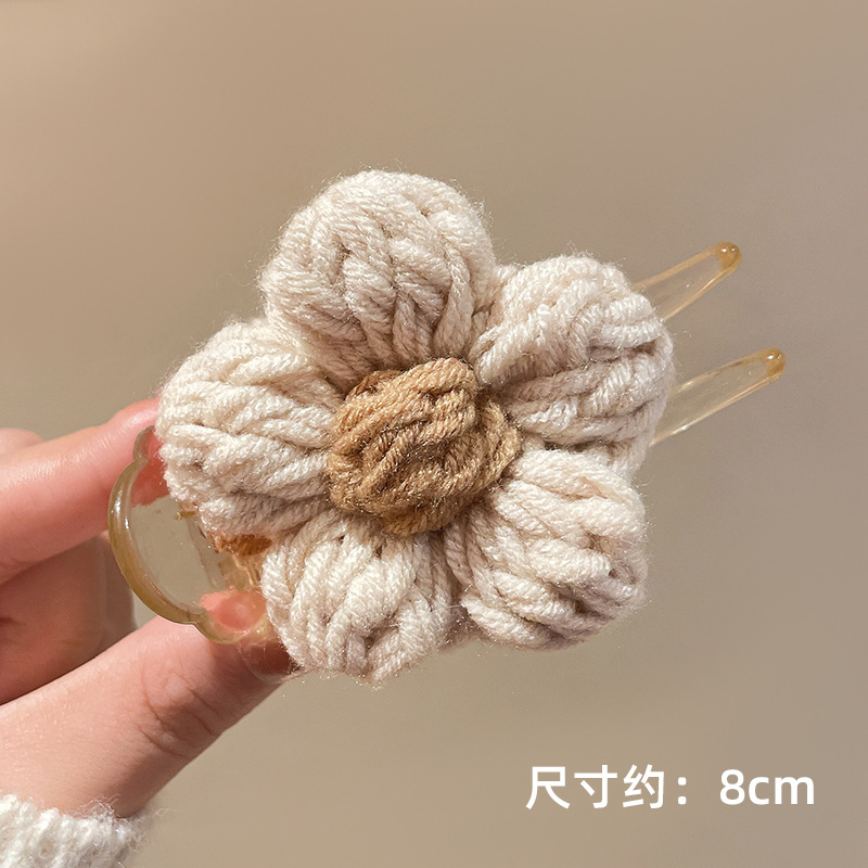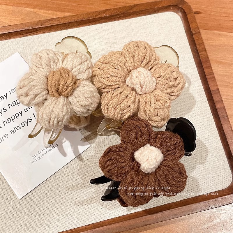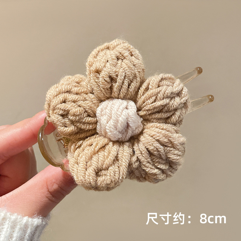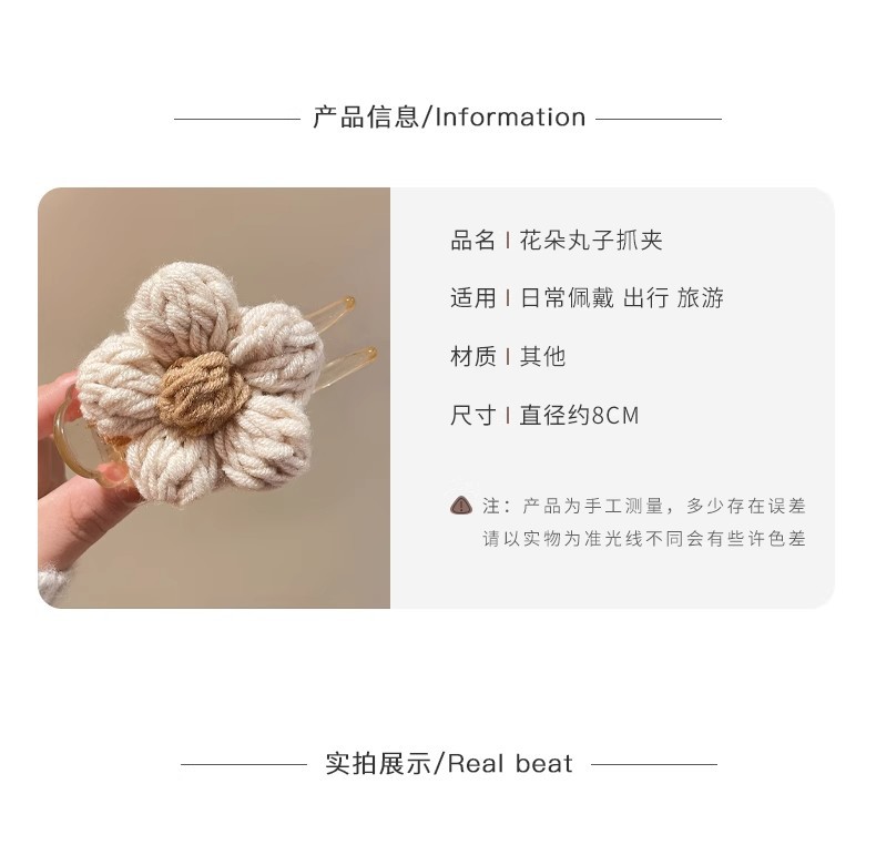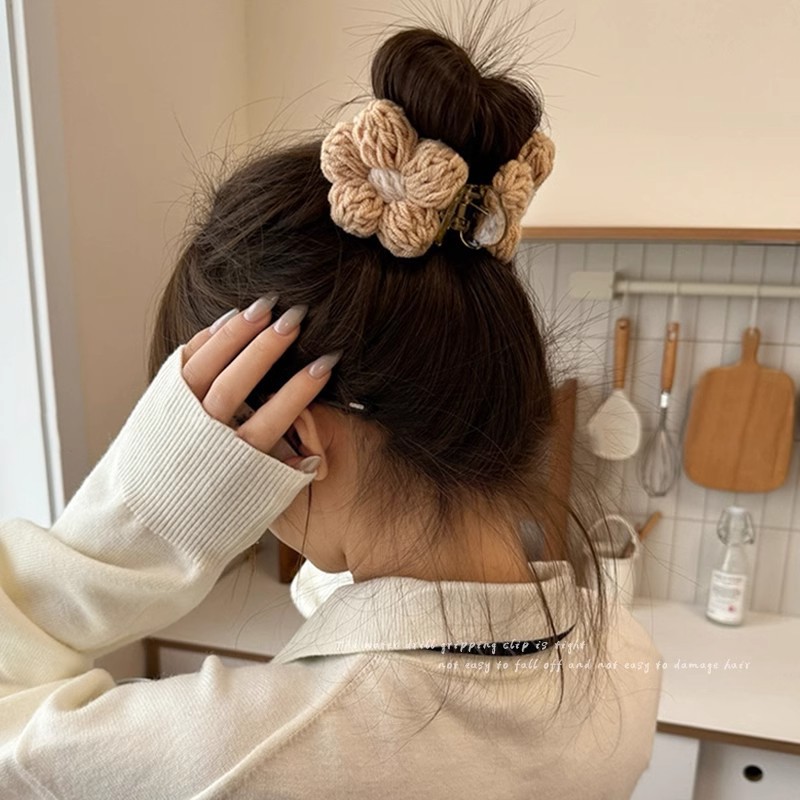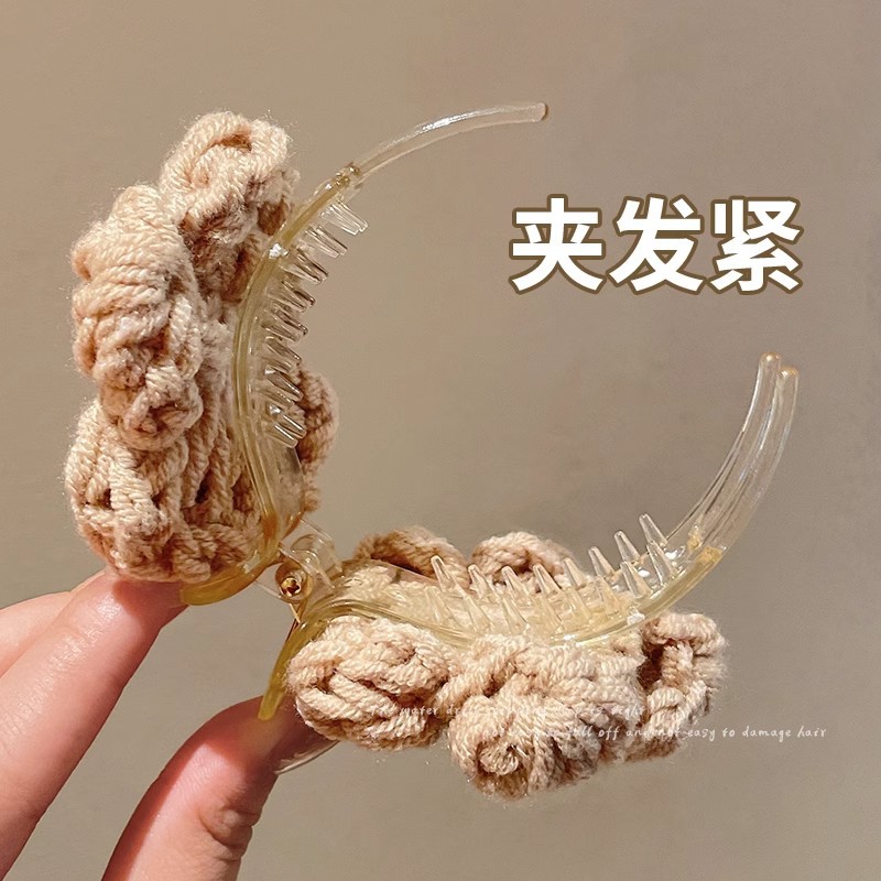 가을과 겨울 양모 꽃 잡아 클립 여성의 2025 새로운 고급 센스 볼 헤드 디스크 헤어 클립 높은 포니 테일 헤어핀 헤드웨어스토어 가기