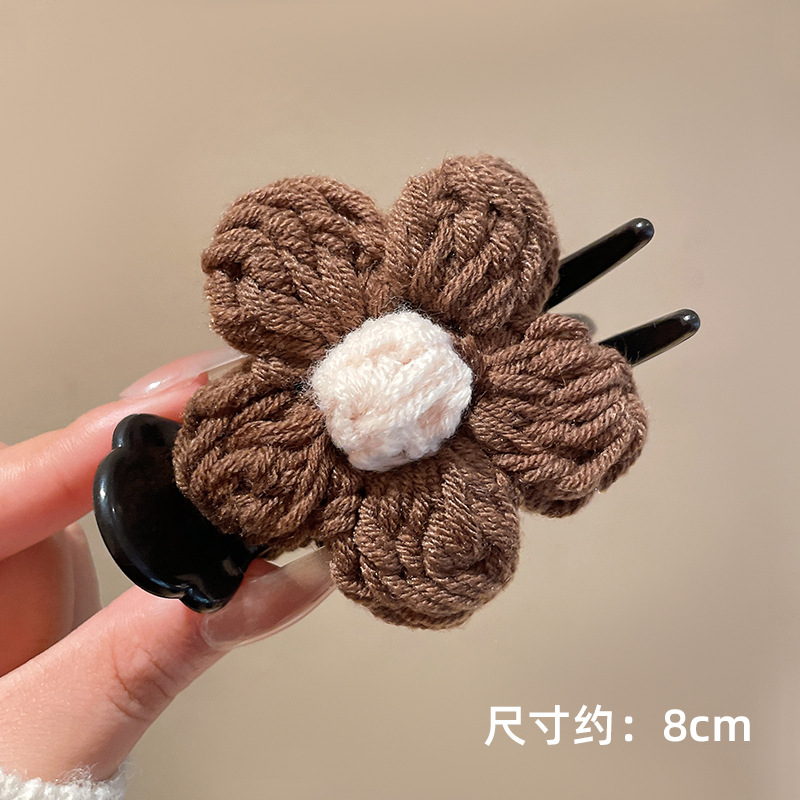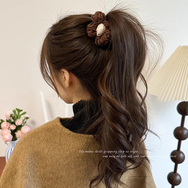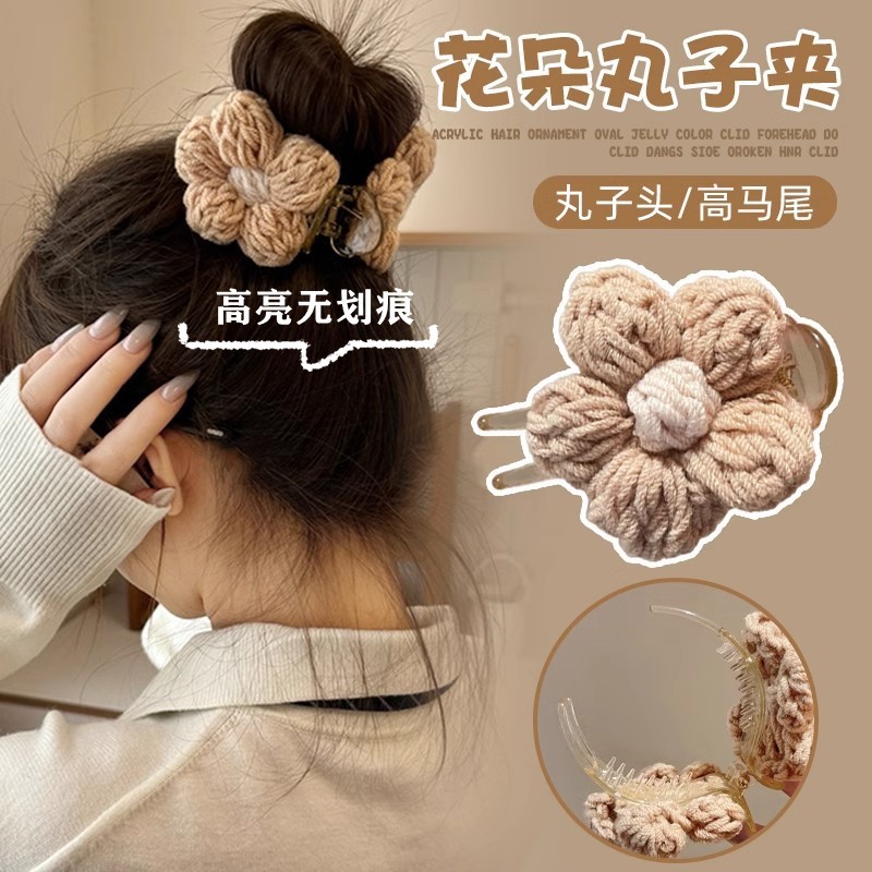 가을과 겨울 양모 꽃 잡아 클립 여성의 2025 새로운 고급 센스 볼 헤드 디스크 헤어 클립 높은 포니 테일 헤어핀 헤드웨어