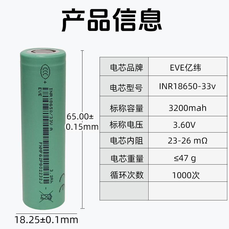 새로운 정품 EVE 33V 18650 3200mAh 파워 5C 리튬 배터리 야외 에너지 저장 전원스토어 가기