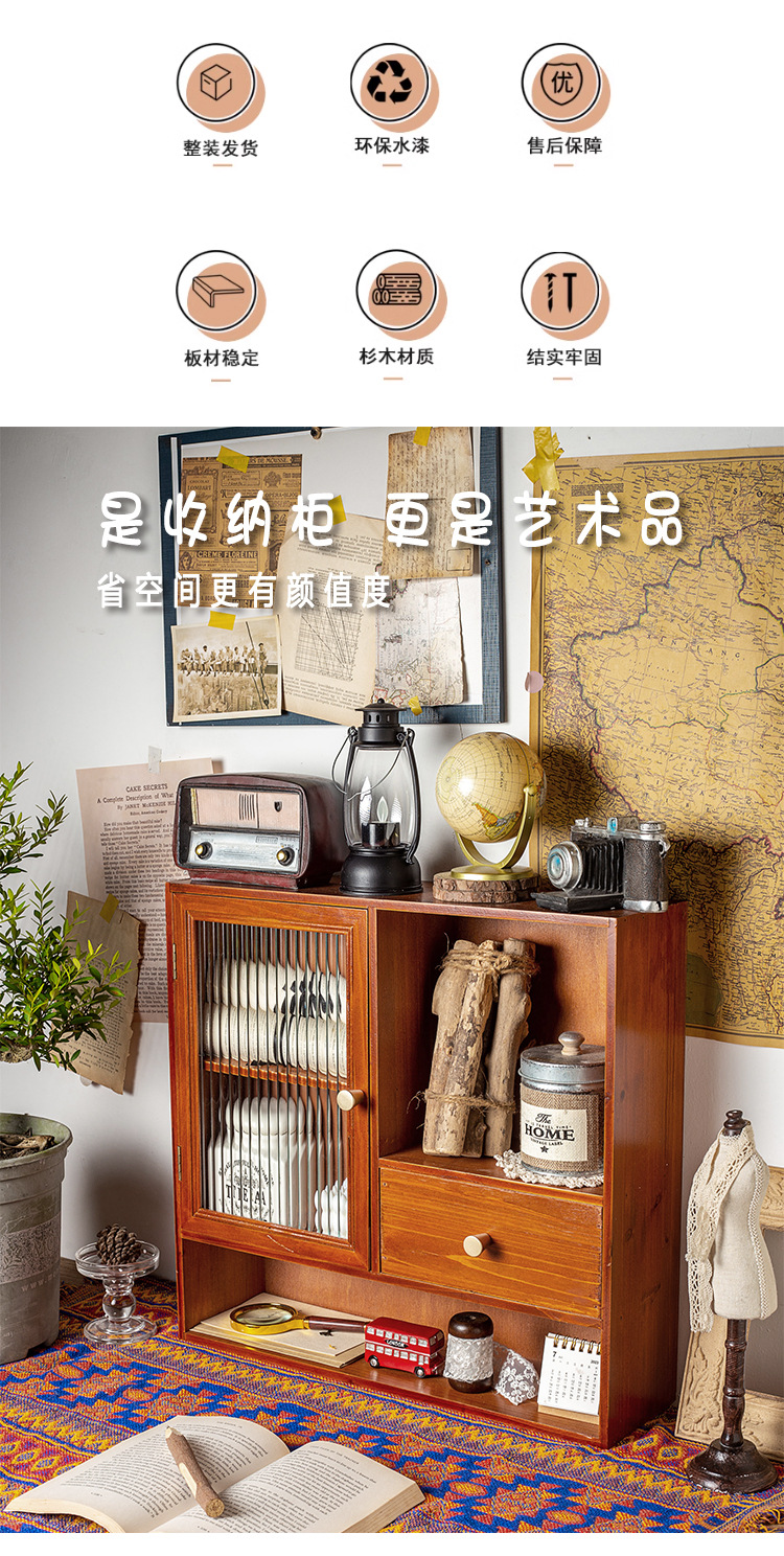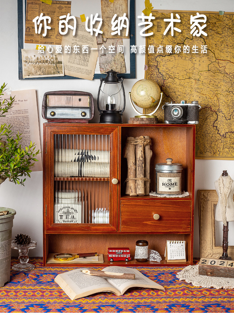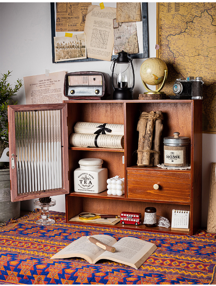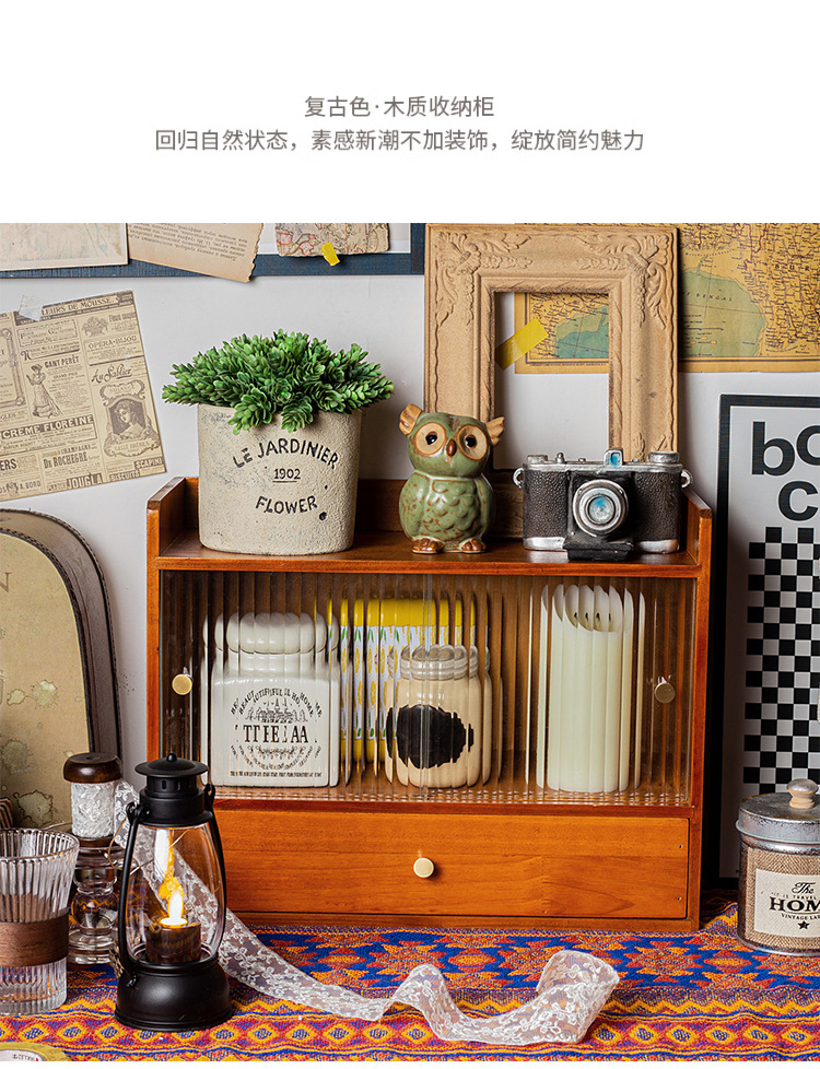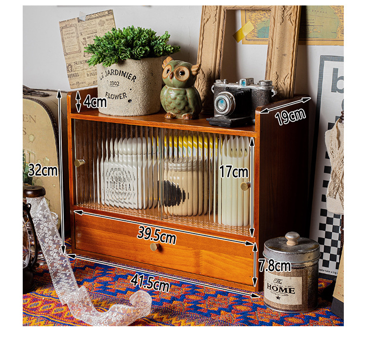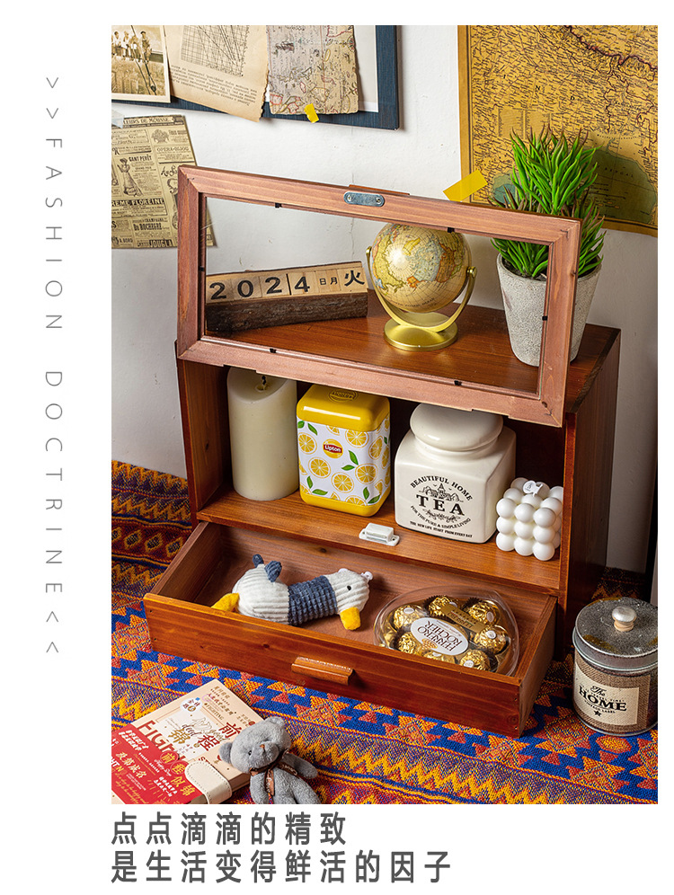 나무 멀티 그리드 스토리지 랙 빈티지 데스크 문구 데스크탑 스토리지 박스 서랍 캐비닛 드레싱 테이블 화장품스토어 가기