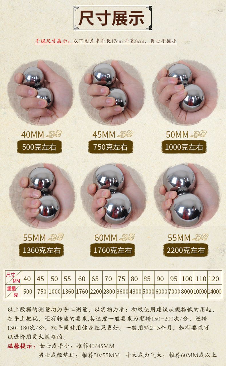 304 스테인레스 스틸 솔리드 스틸 볼 피트니스 핸드볼 중년 및 노인 마사지 핸드 헬드 볼 태그피트니스 Zhao Zhizhou