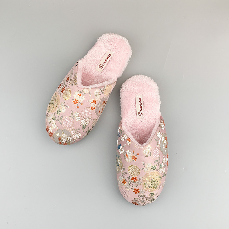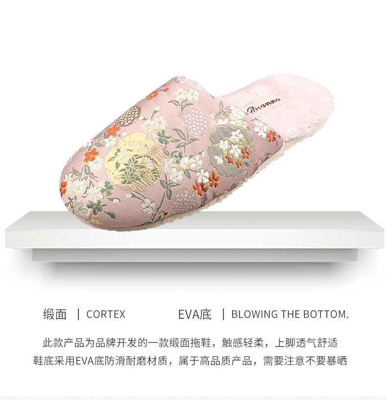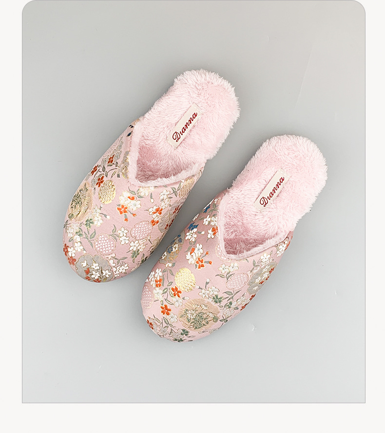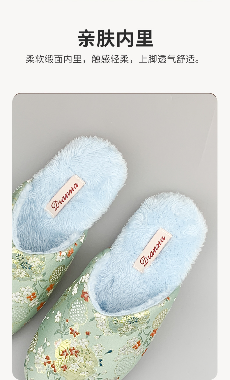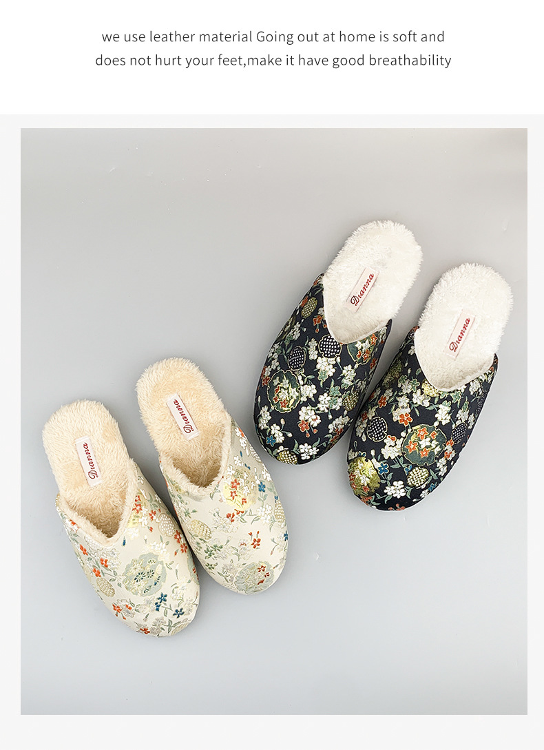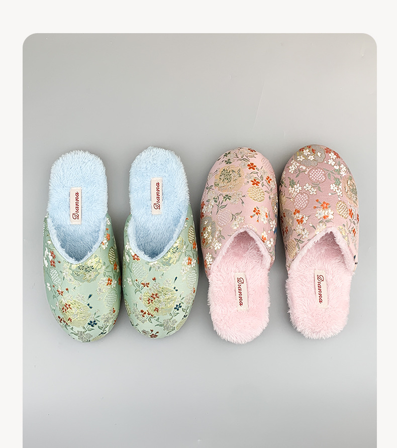 커플 가을과 겨울 새틴 국가 스타일 자수 봉제 슬리퍼 홈 따뜻한 면 슬리퍼 남성과 여성