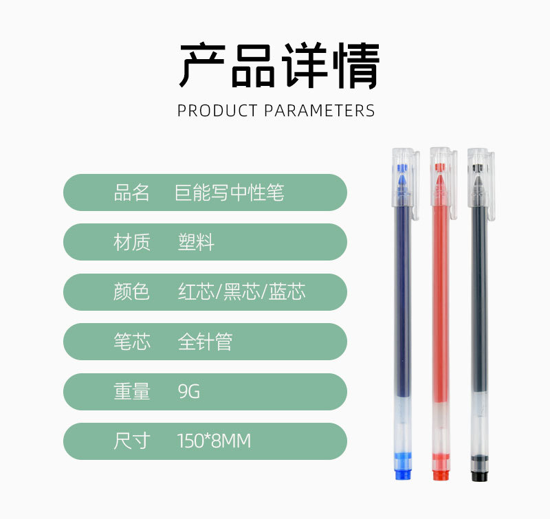 20 거인은 젤 펜을 쓸 수 있습니다 0.5mm 블랙 레드 블루 물 기반 사인 펜 학생 사무실 대용량 펜 탄소 펜