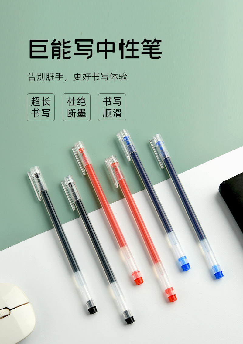 20 거인은 젤 펜을 쓸 수 있습니다 0.5mm 블랙 레드 블루 물 기반 사인 펜 학생 사무실 대용량 펜 탄소 펜스토어 가기
