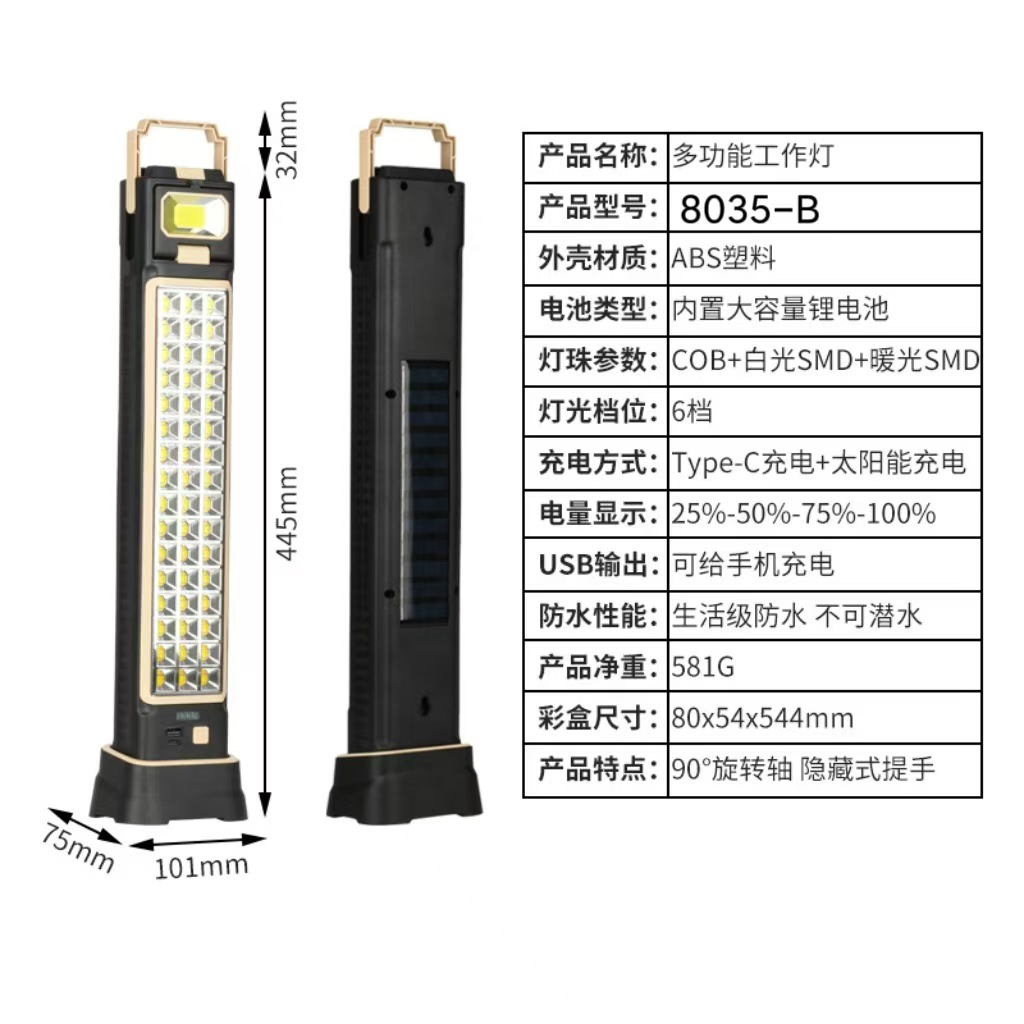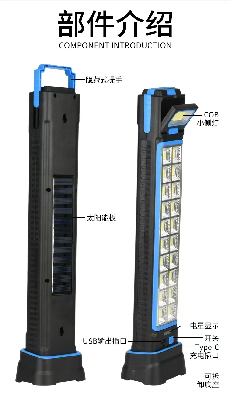 국경 간 새로운 태양 충전 다기능 USB 유지 보수 가정용 휴대용 비상 조명 캠핑 텐트 작업 조명