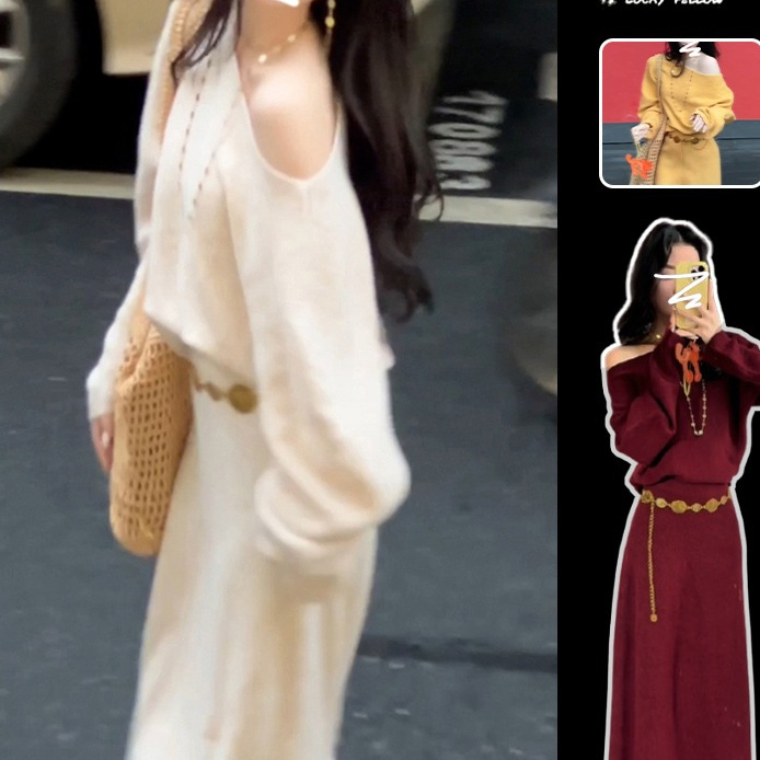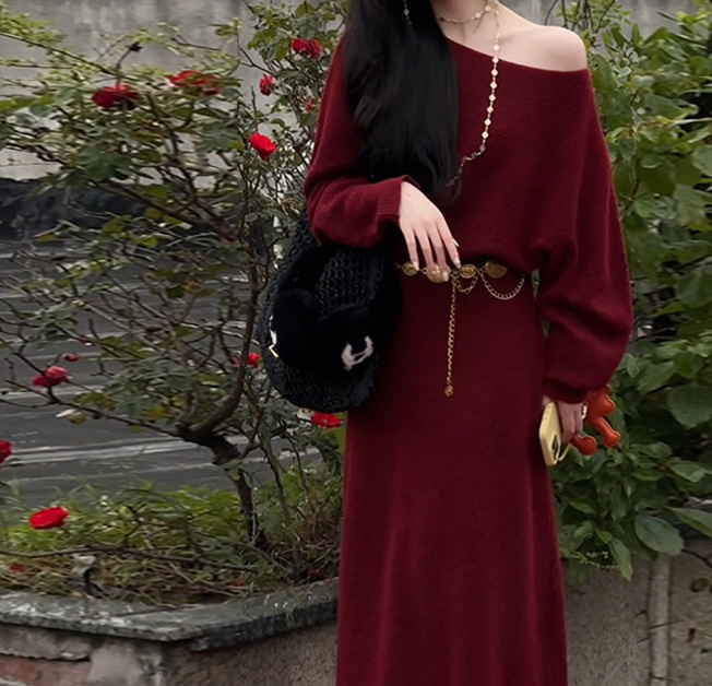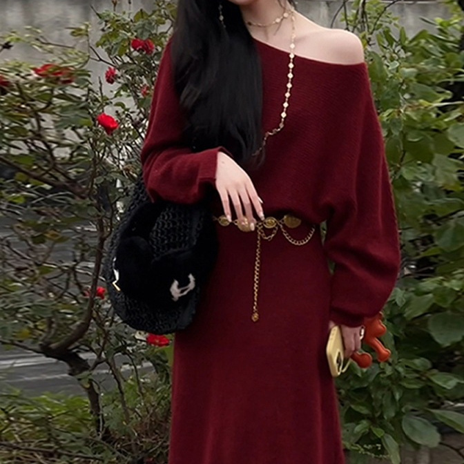 니트 원피스 어린이 2024 새로운 가을과 겨울 젠틀 전체 세트 크리스마스 가운 착용스토어 가기