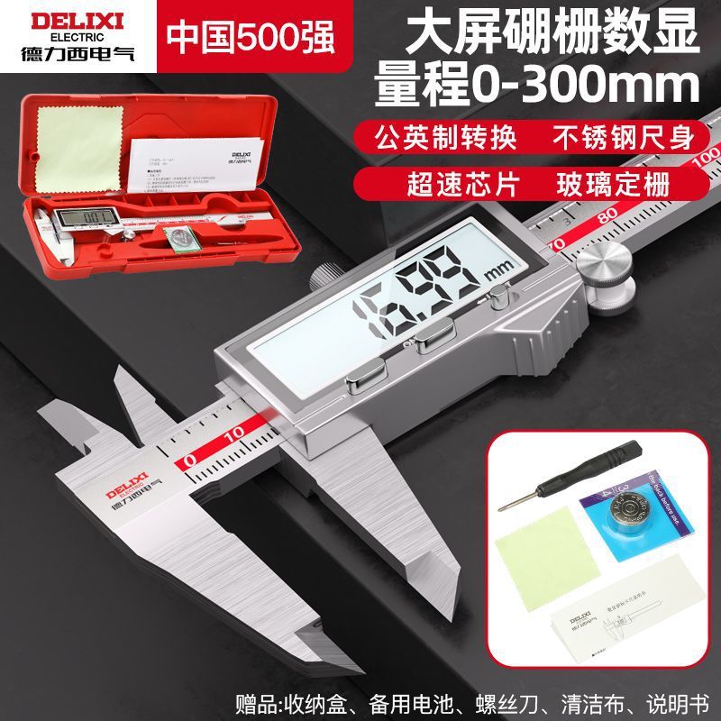 Delexi 전기 버니어 캘리퍼 측정 캘리퍼 가정용 고정밀 산업 150 작은 200 스테인레스 스틸스토어 가기