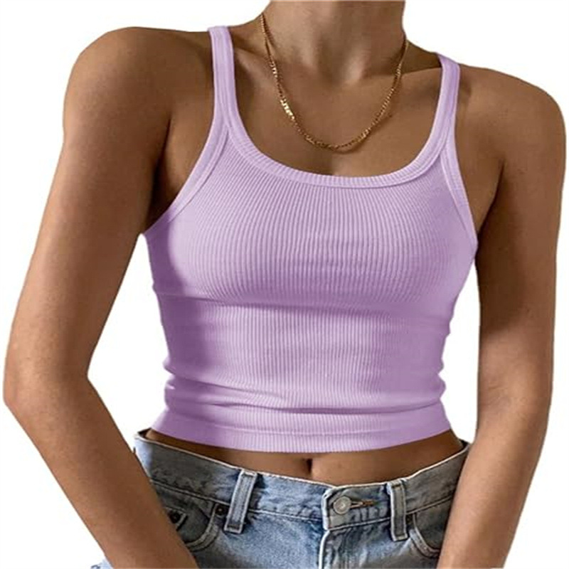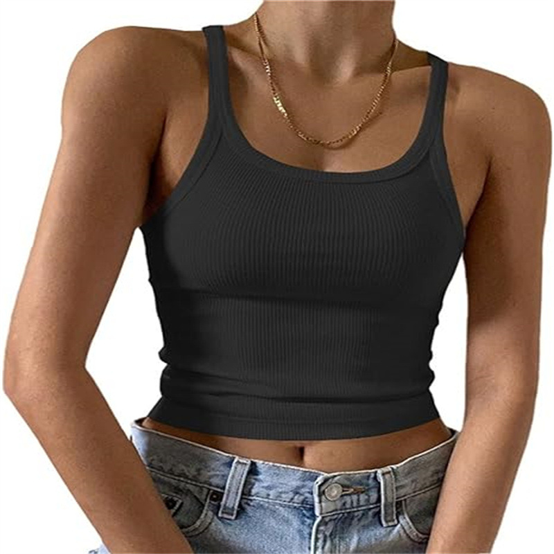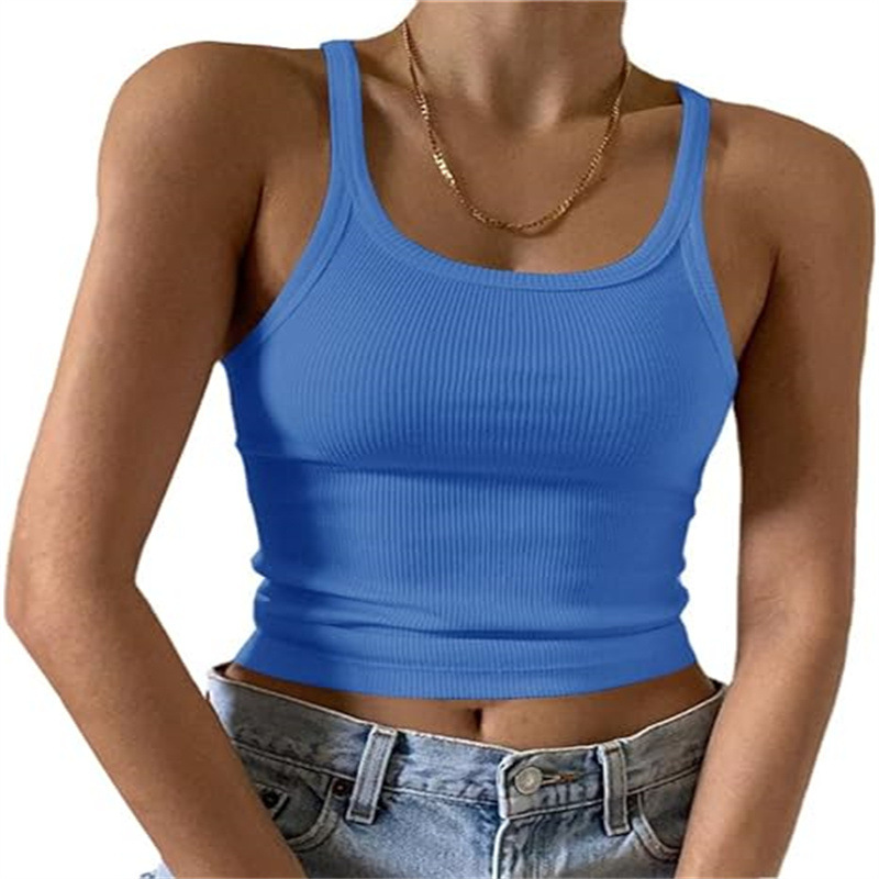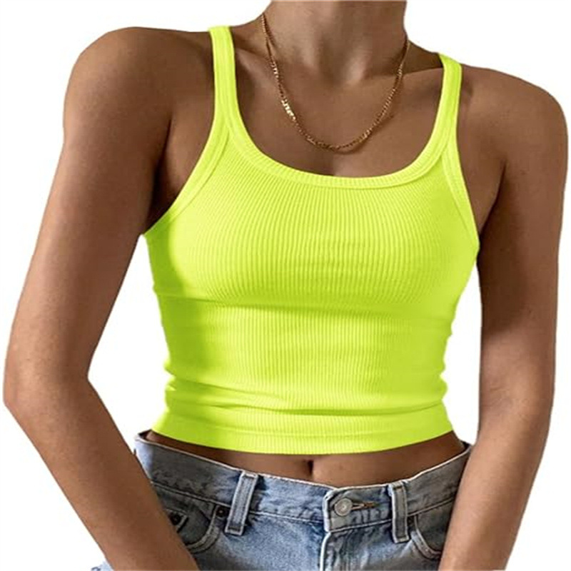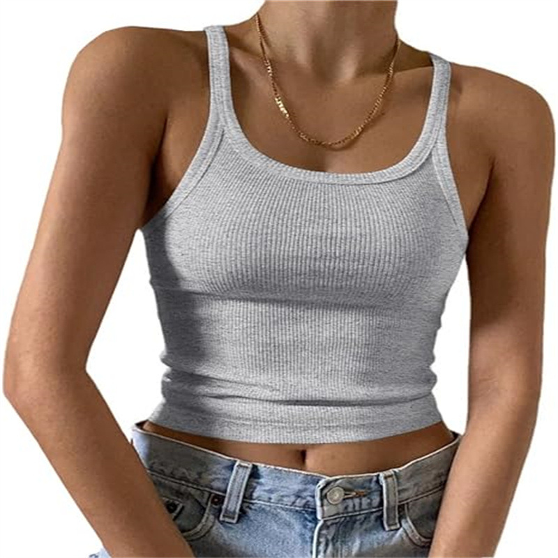 국경 간 아마존 카미 솔 유럽 및 미국 조끼 여성 여름 스파이스 걸스 외부 착용 얇은 조끼 배꼽 밀크 실크 탑스토어 가기