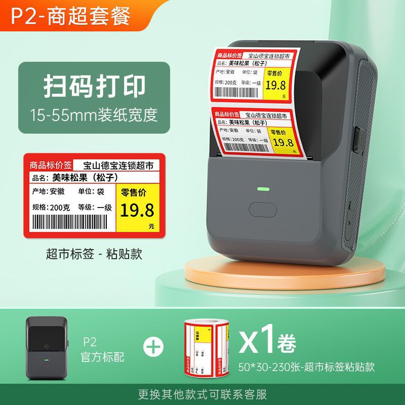 새로운 P2 담배 가격 라벨 프린터 편의점 슈퍼마켓 상품 가격 라벨 방수 접착 바코드 기계스토어 가기
