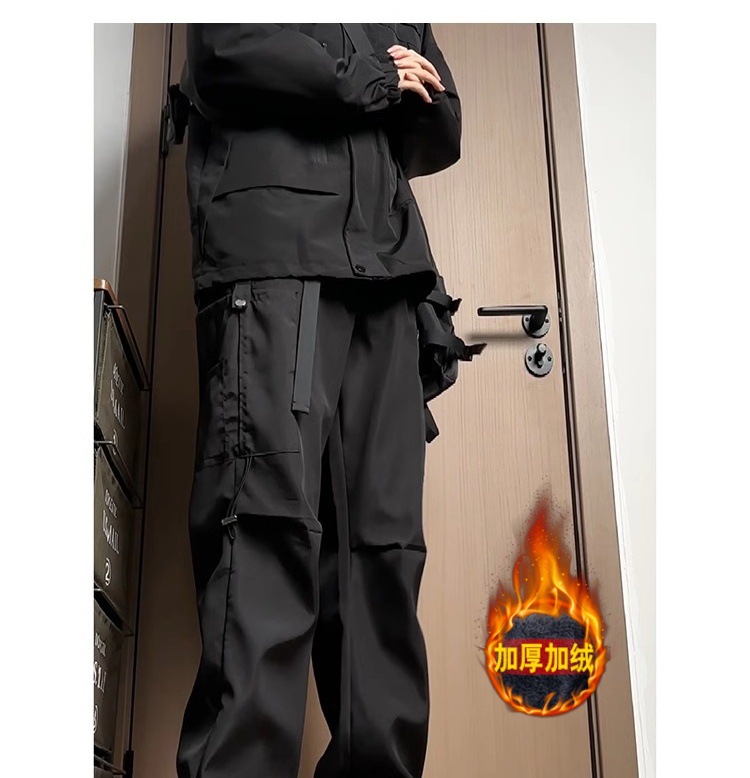남자 겨울 남자 스트레이트 배럴 낙하산 바지 기모 탑과 트렌디 한 브랜드 캐주얼 바지