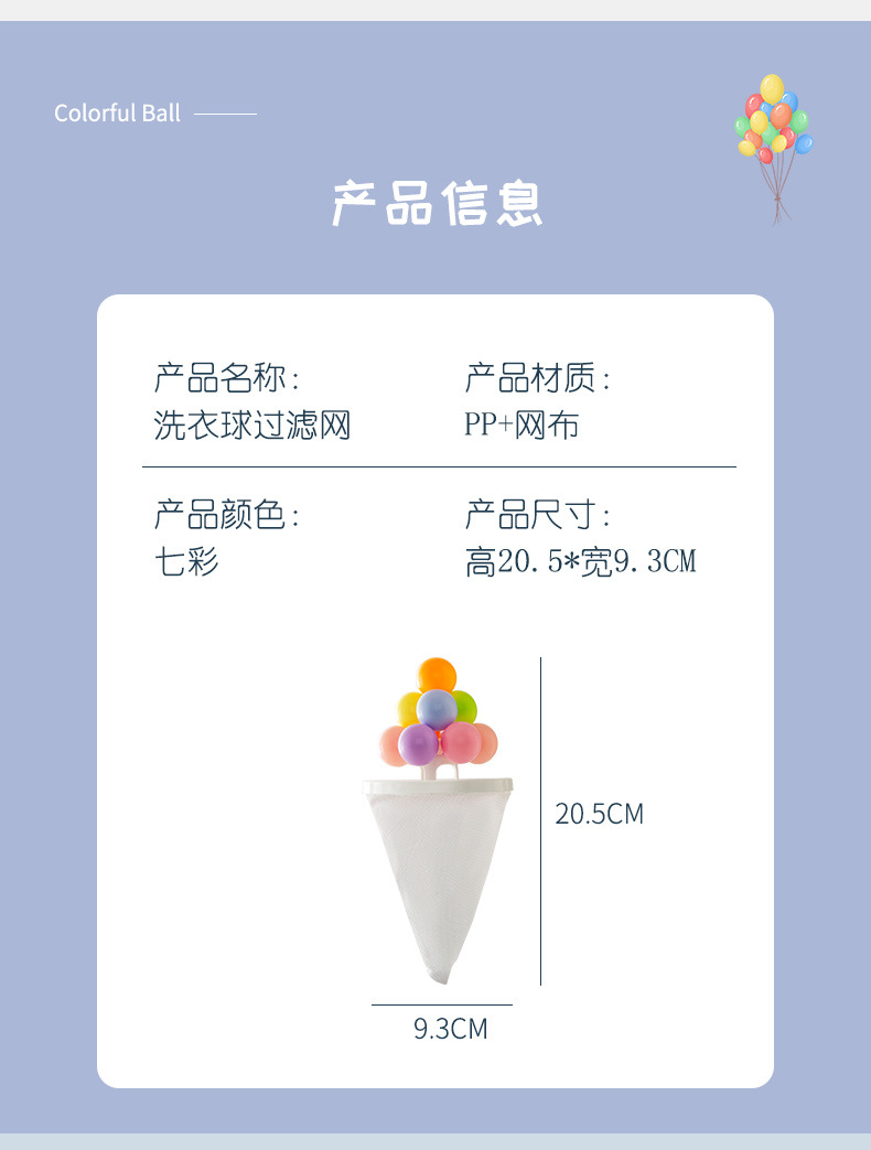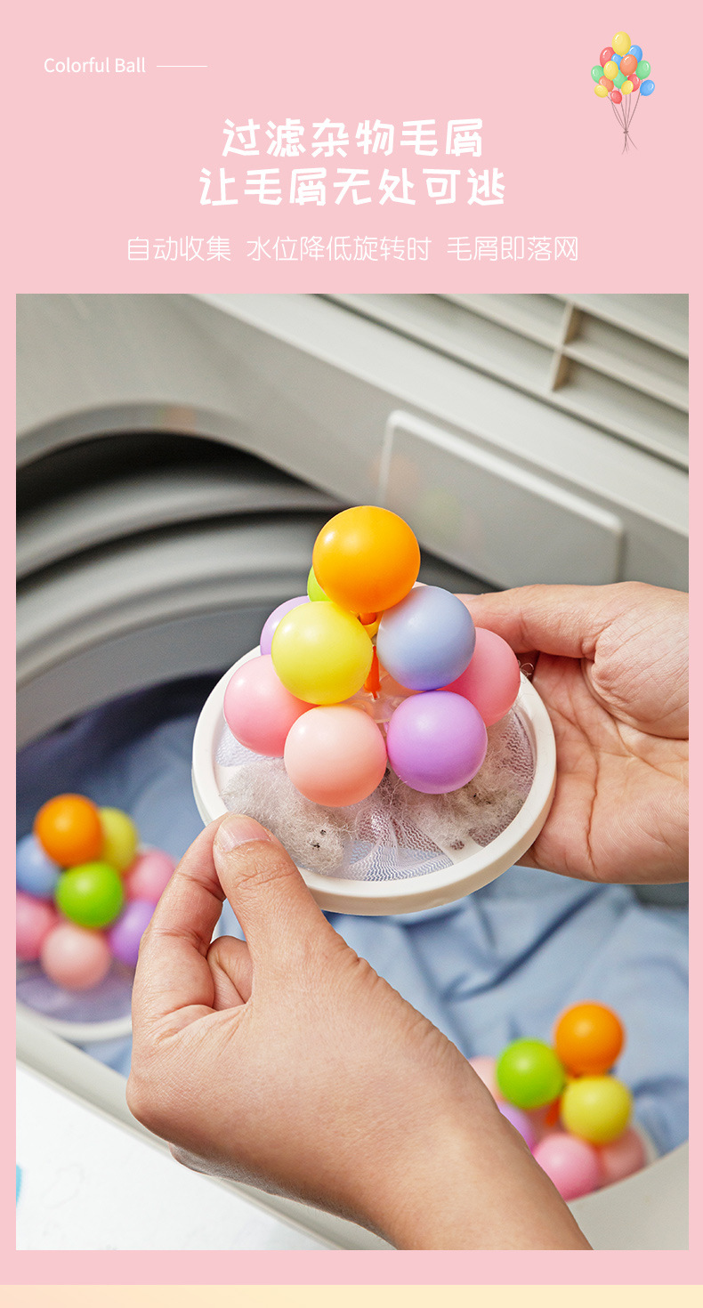 새롭게 업그레이드된 다채로운 볼 세탁기 필터는 보풀, 머리카락, 종이 부스러기 등의 엉킴을 방지하는 필터망으로, 세탁 및 보호용으로 사용할 수 있습니다.