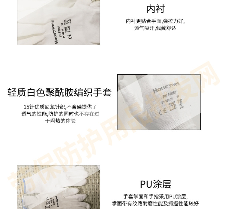 Honeywell 2132255 나일론 PU 코팅 부드러운 경량 통기성 비 슬립 작업 보호 장갑