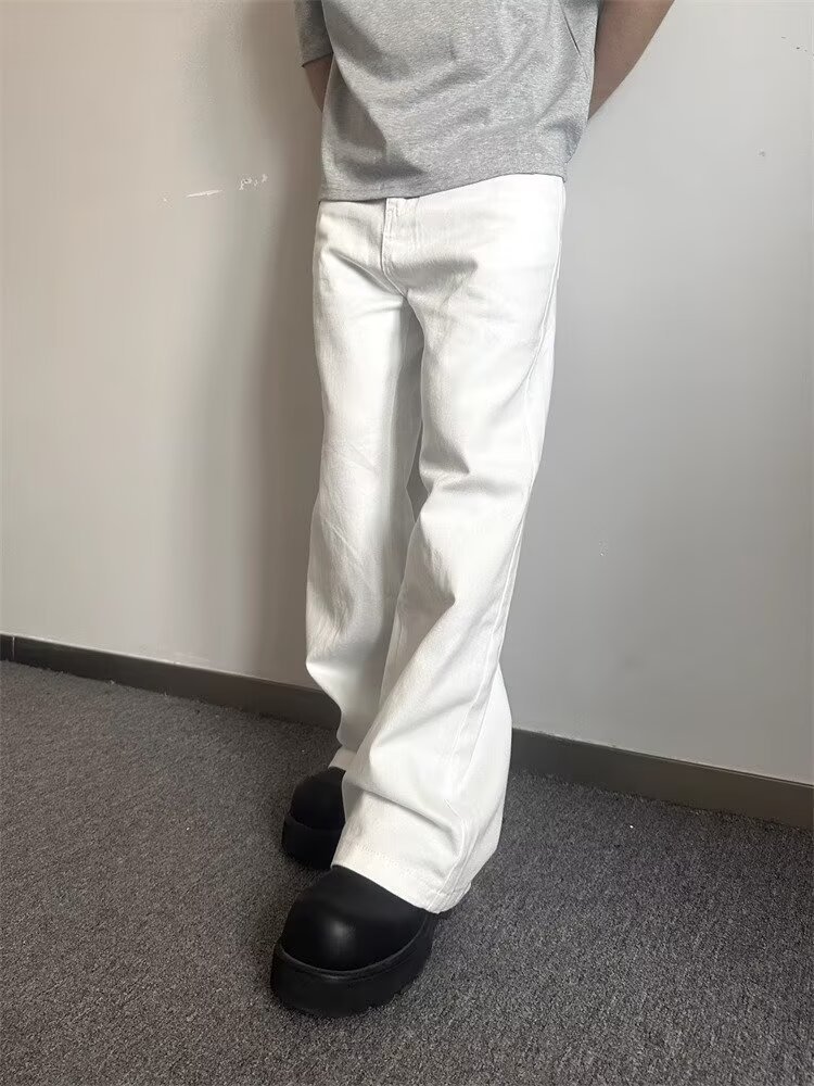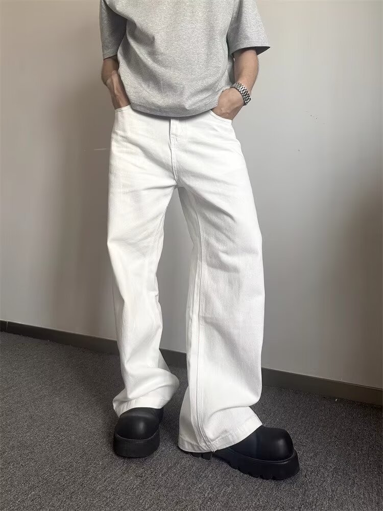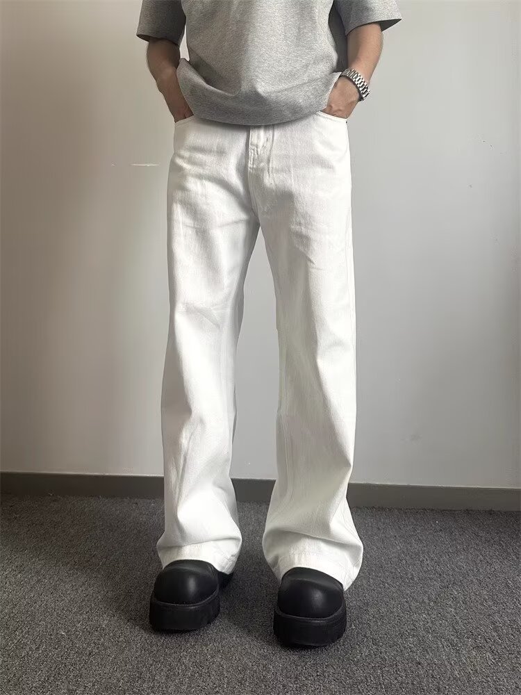 클린 핏 화이트 마체 테 청바지 남성 아메리칸 스타일 하이 스트리트 바이브 바지 높은 허리 슬리밍 스트레이트 팬츠스토어 가기