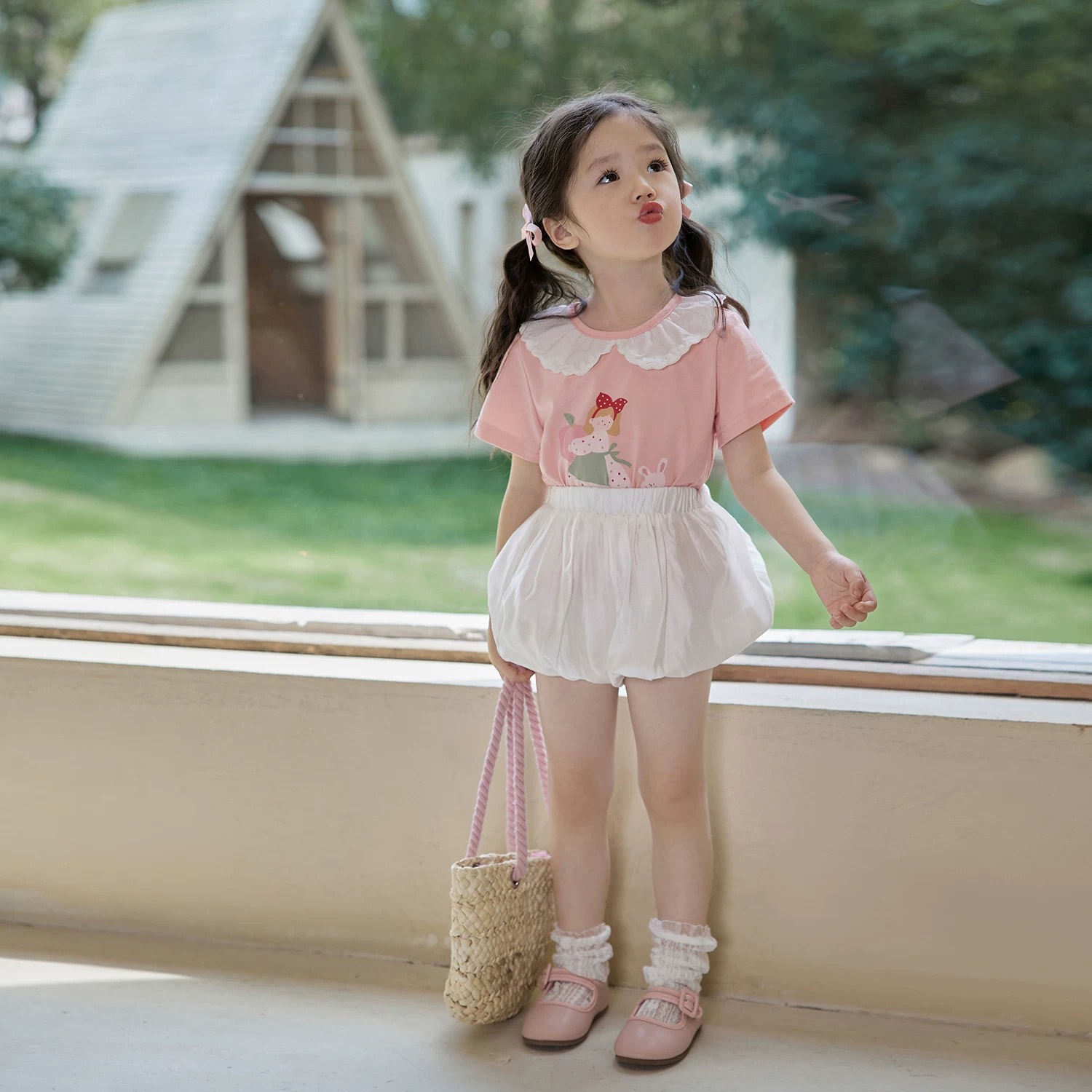 소녀 반바지 아기 호박 바지 푹신한 소녀 솔리드 컬러 블루머 걸스 여름 얇은 반바지스토어 가기