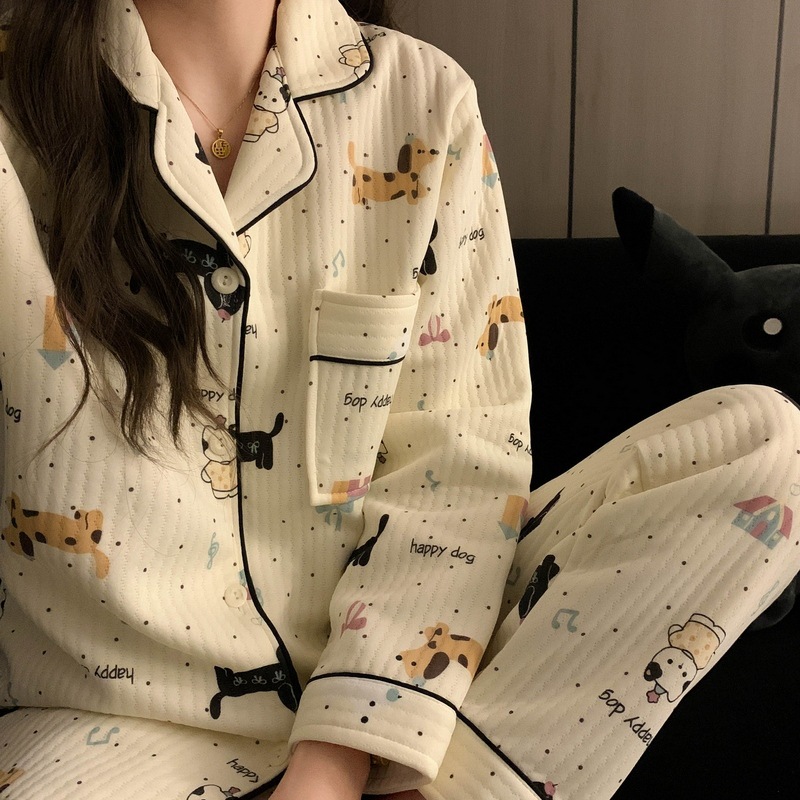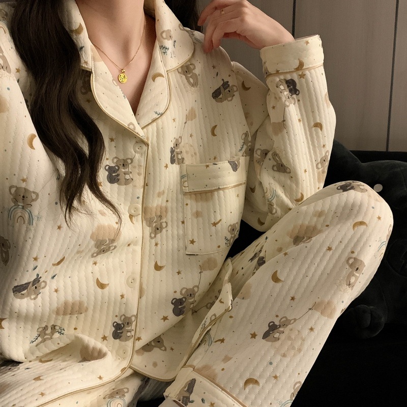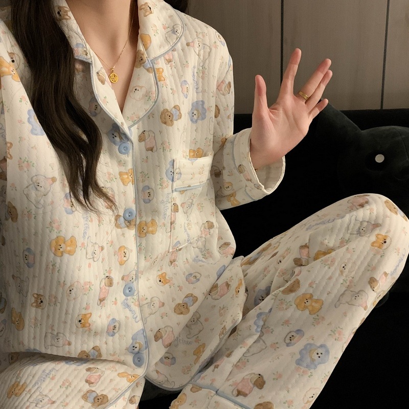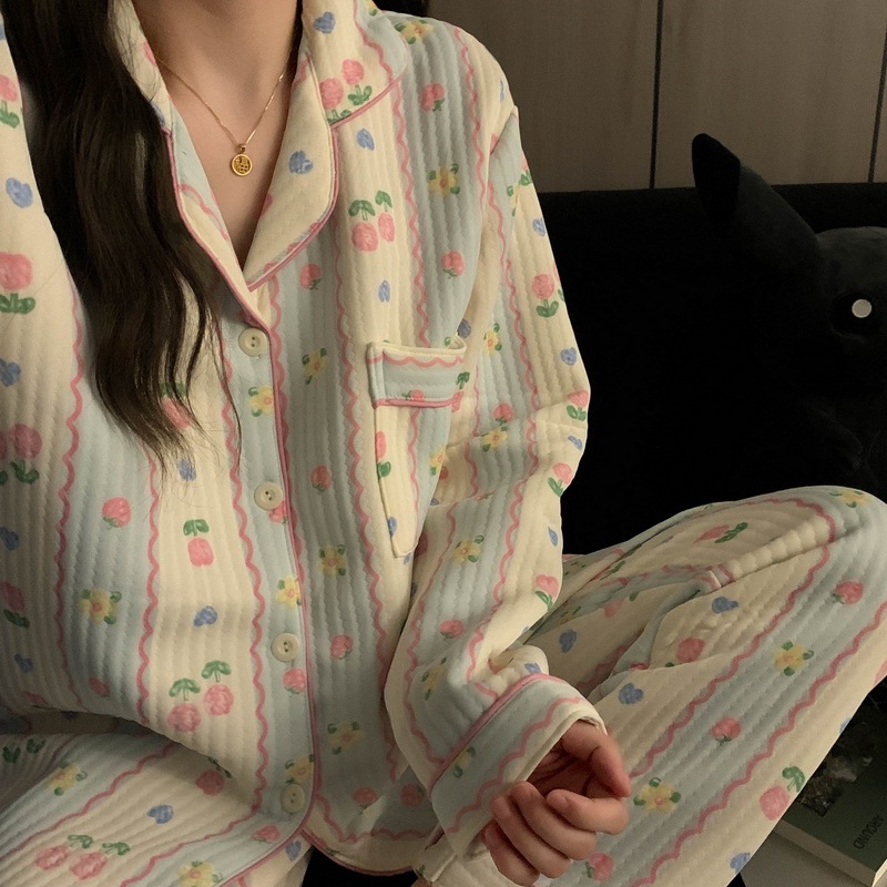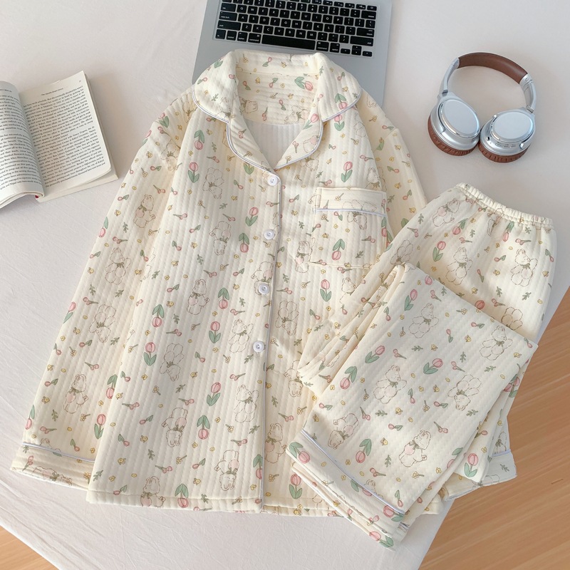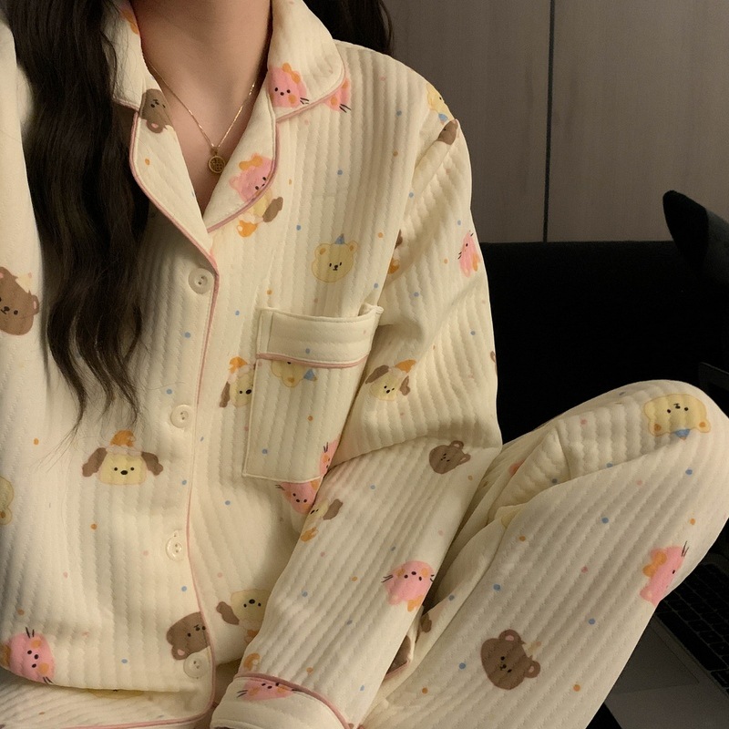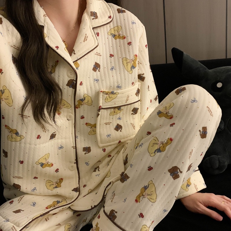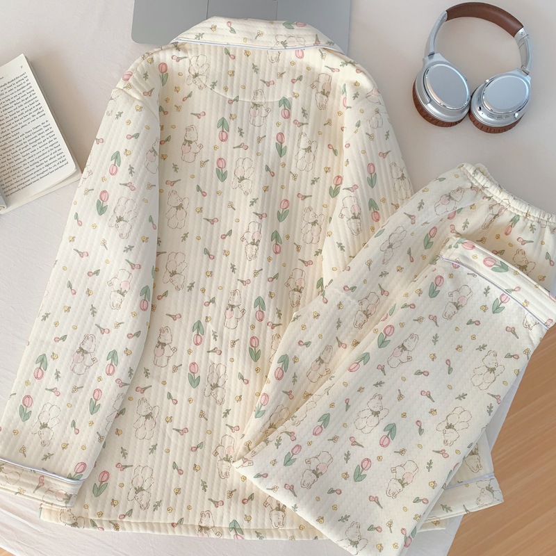 가을과 겨울 새로운 샌드위치 잠옷 여성 만화 꽃 토끼 두껍게 따뜻한 귀여운 홈 의류 제조 업체 재고스토어 가기