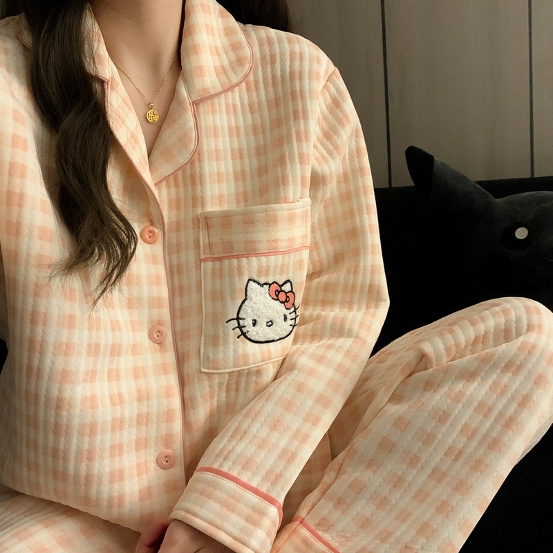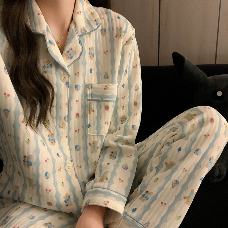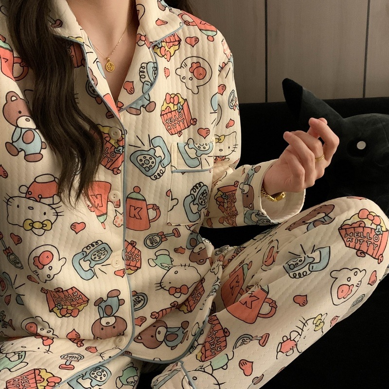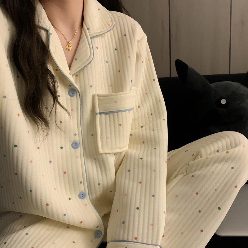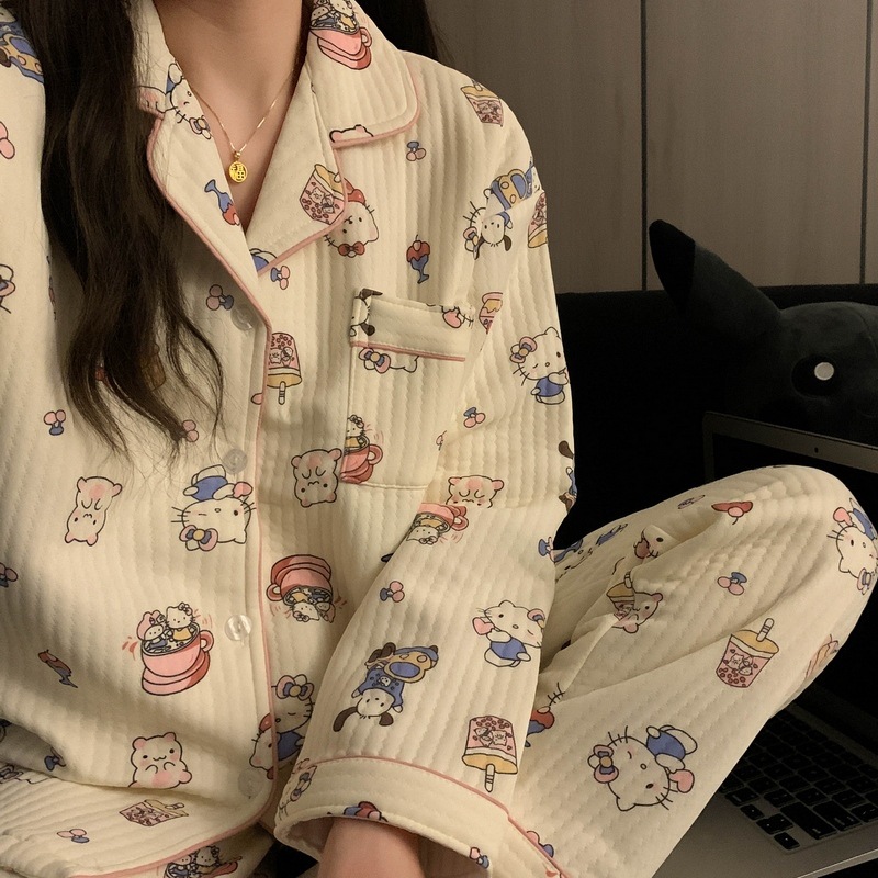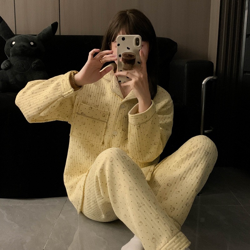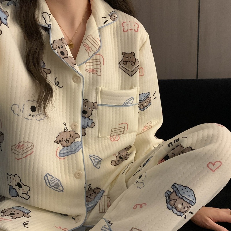 가을과 겨울 새로운 샌드위치 잠옷 여성 만화 꽃 토끼 두껍게 따뜻한 귀여운 홈 의류 제조 업체 재고스토어 가기