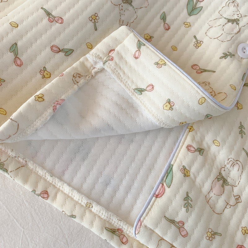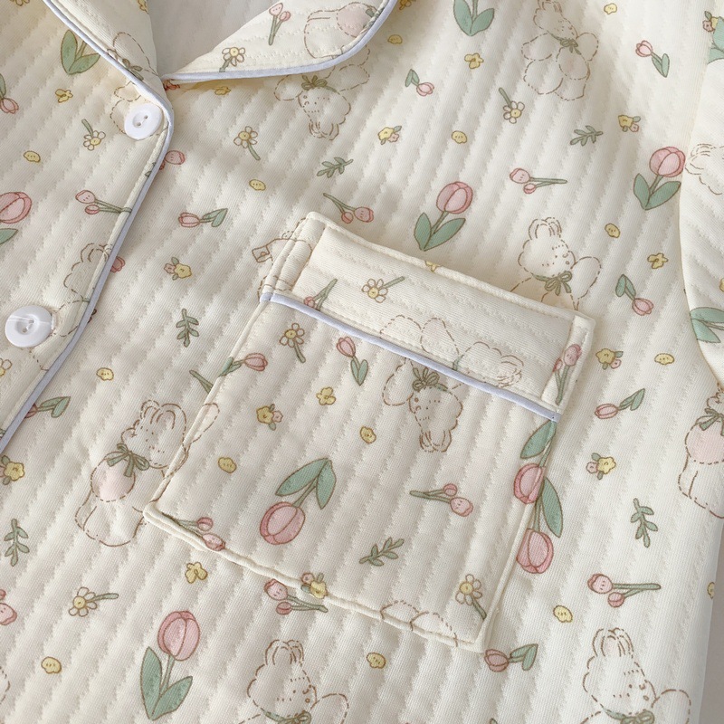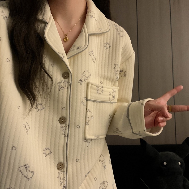 가을과 겨울 새로운 샌드위치 잠옷 여성 만화 꽃 토끼 두껍게 따뜻한 귀여운 홈 의류 제조 업체 재고
