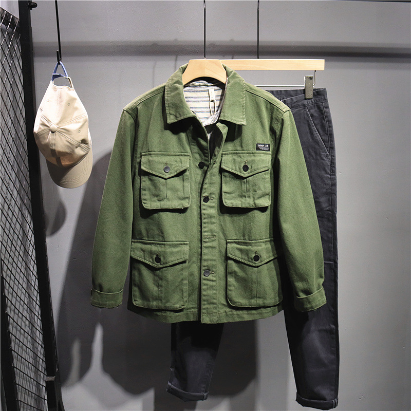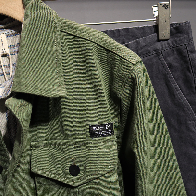 미국 터프 맨 스타일 툴링 카키 재킷 남성 트렌디 브랜드 재킷 일본 스타일 느슨한 CEC 데님 탑 블랙스토어 가기