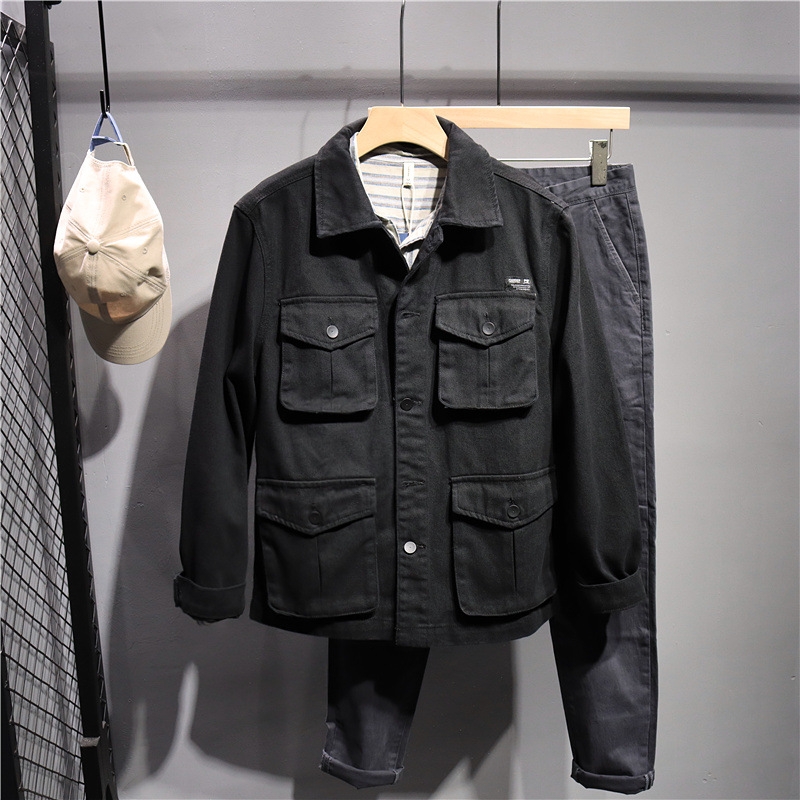 미국 터프 맨 스타일 툴링 카키 재킷 남성 트렌디 브랜드 재킷 일본 스타일 느슨한 CEC 데님 탑 블랙