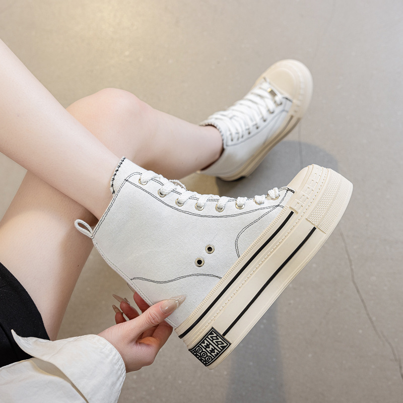 캔버스 신발 여성 2025 봄과 가을 새로운 평면 슈퍼 보이지 않는 인테리어 캐주얼 솔리드 컬러 싱글 레이어 신발 레이스 업 고무 미끄럼 방지 여성용 신발