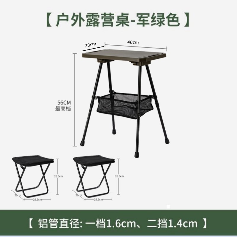 • 플라스틱 테이블 밀리터리 그린 + 메쉬백 + 핸드백 스툴(알루미늄 튜브) 블랙 2개
