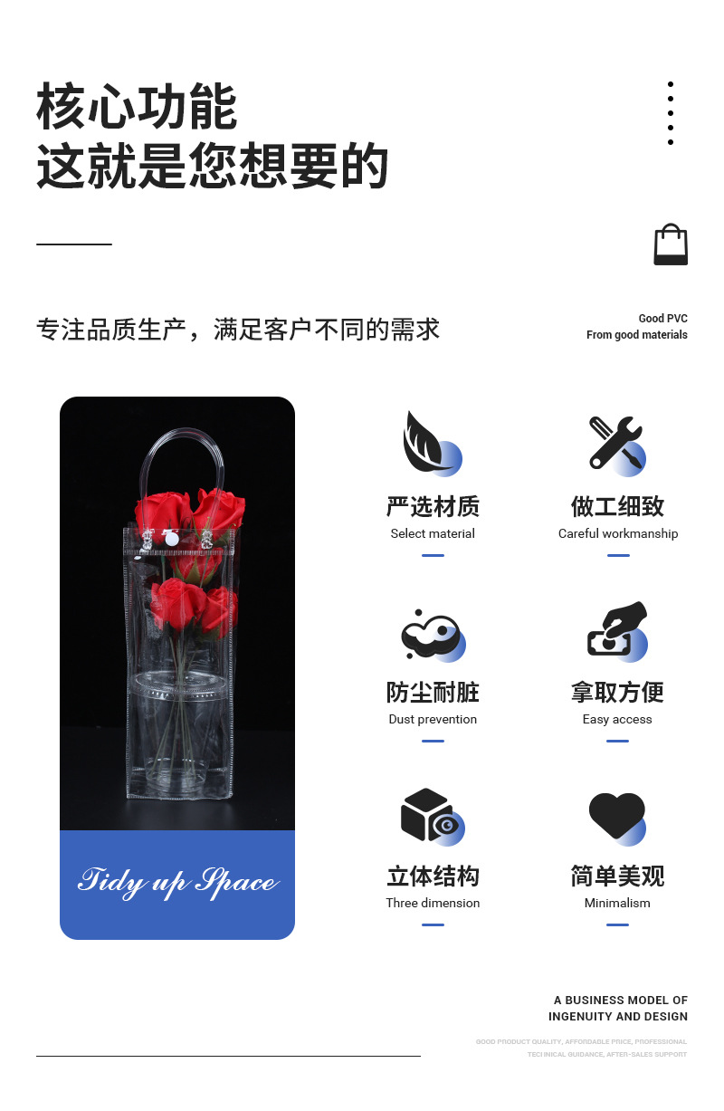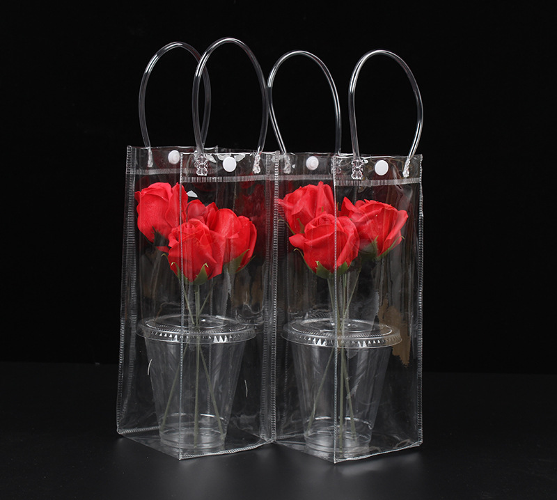 간단한 투명 PVC 핸드백 고급 감각 우유 차 꽃 가방 웨딩 사탕 플라스틱 선물 가방 맞춤 로고스토어 가기
