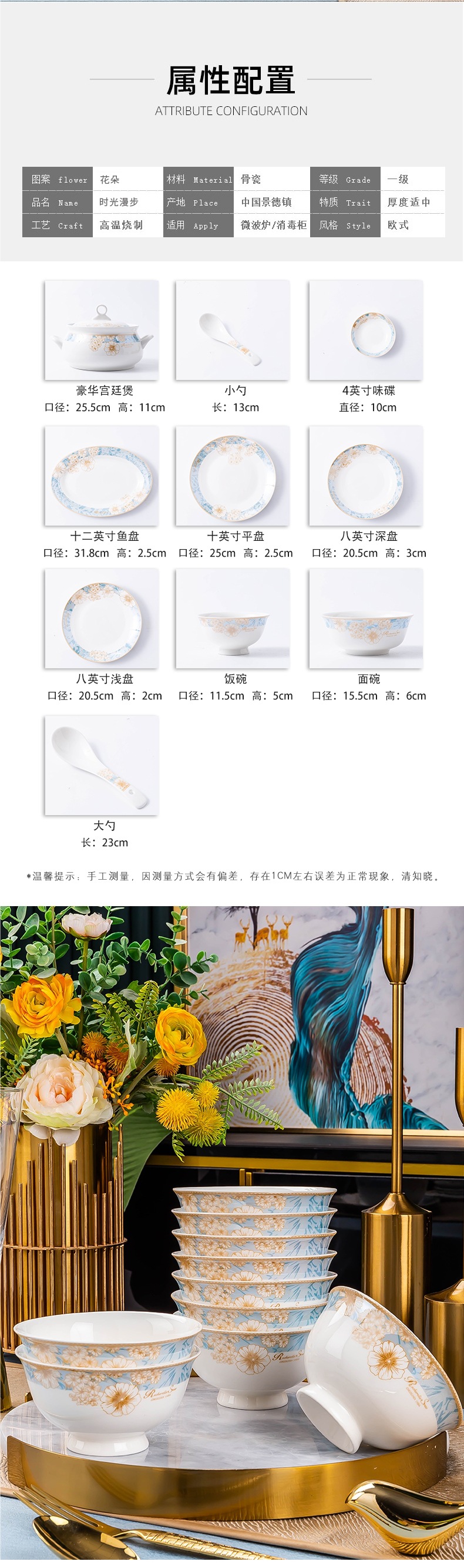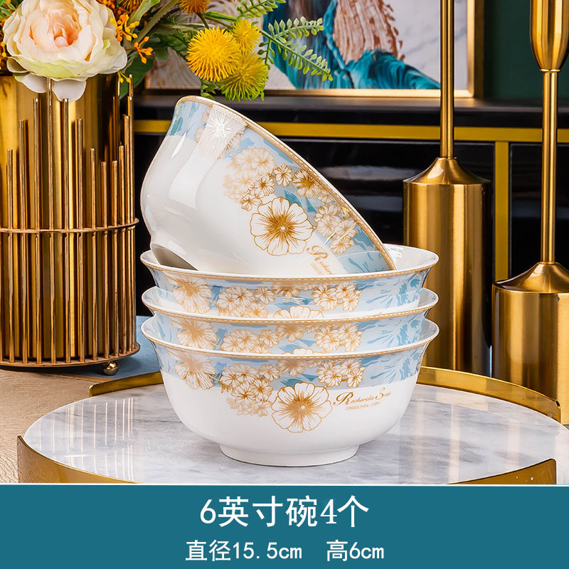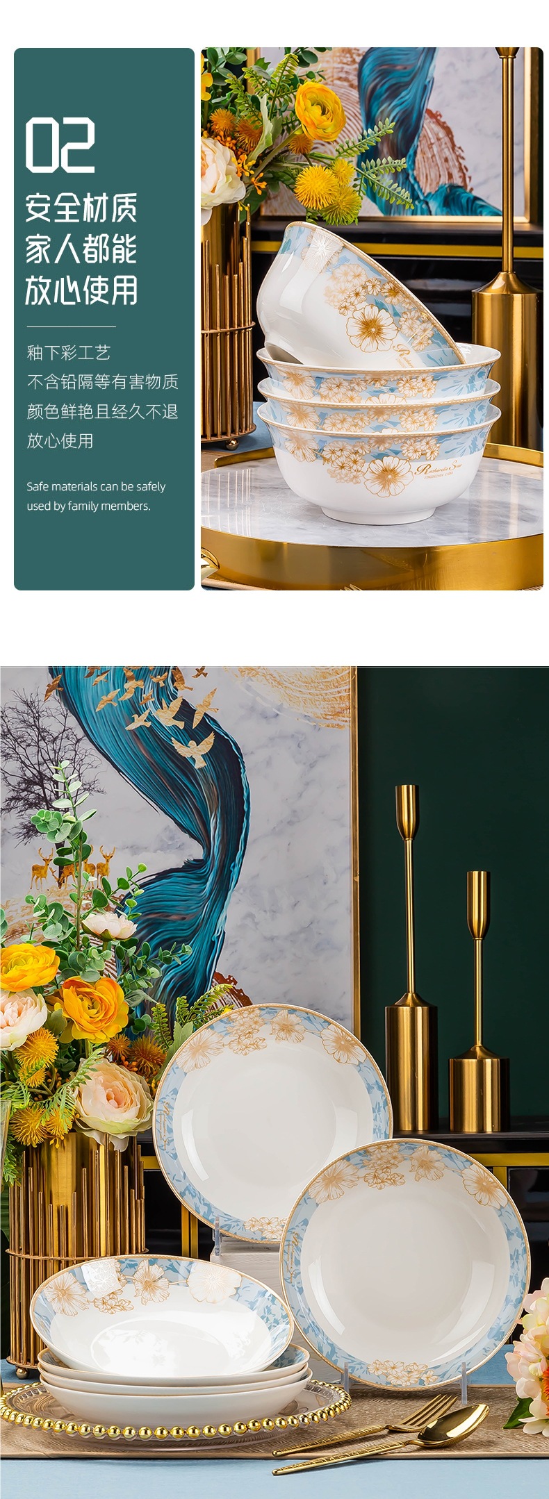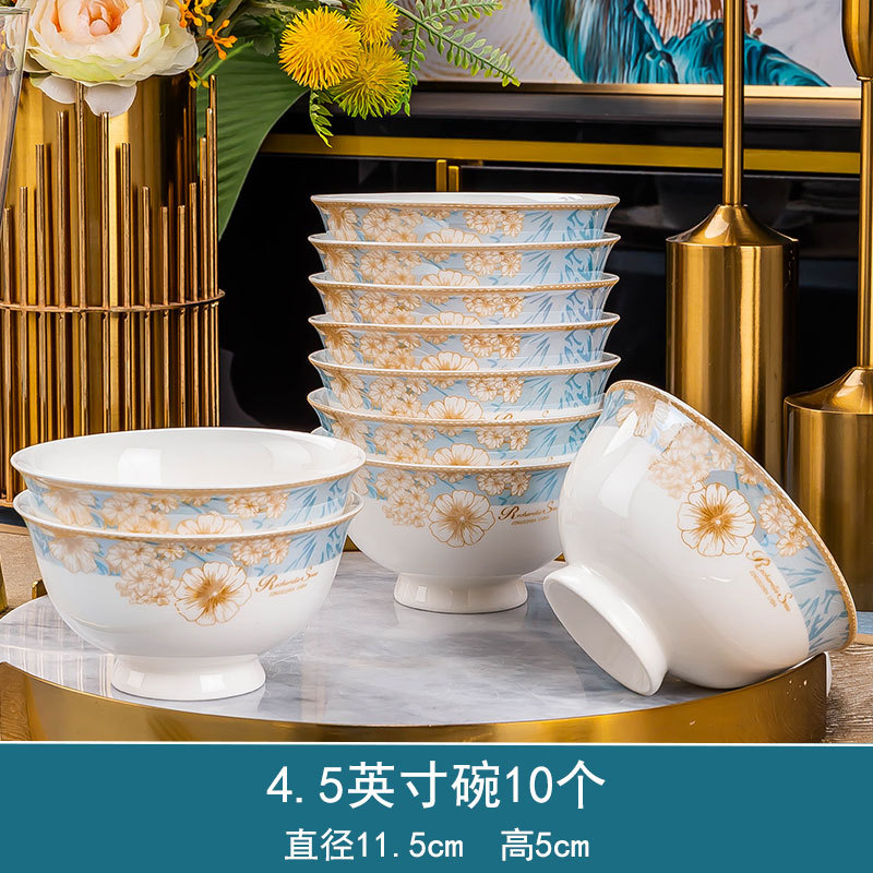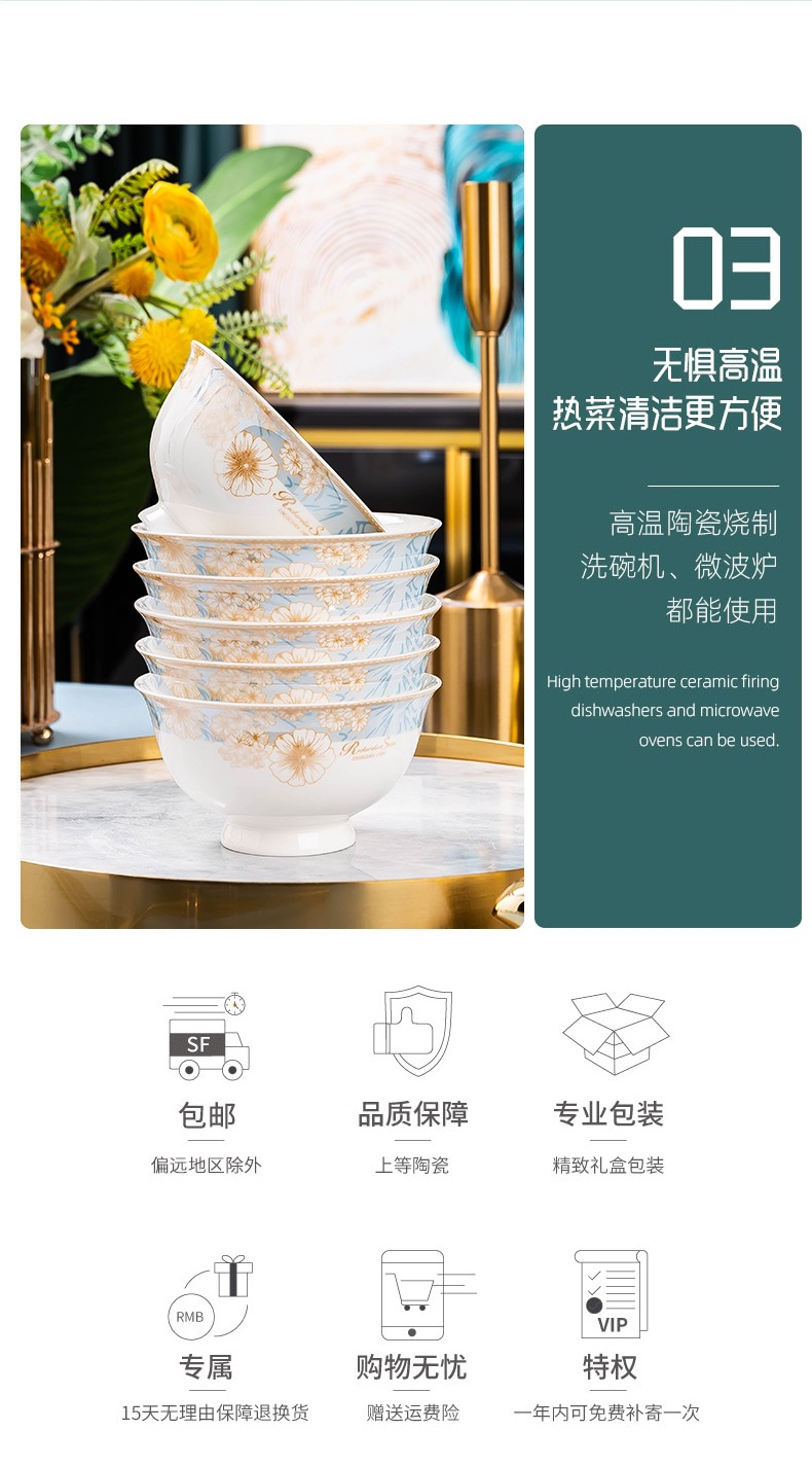 Jingdezhen 접시 가정용 2024 새로운 세라믹 식기 안티 스케일 하이 풋 보울 10 팩 다이닝 보울 플레이트 고온스토어 가기
