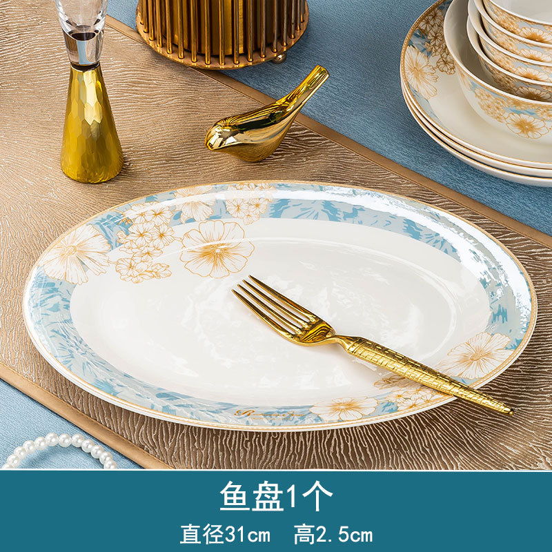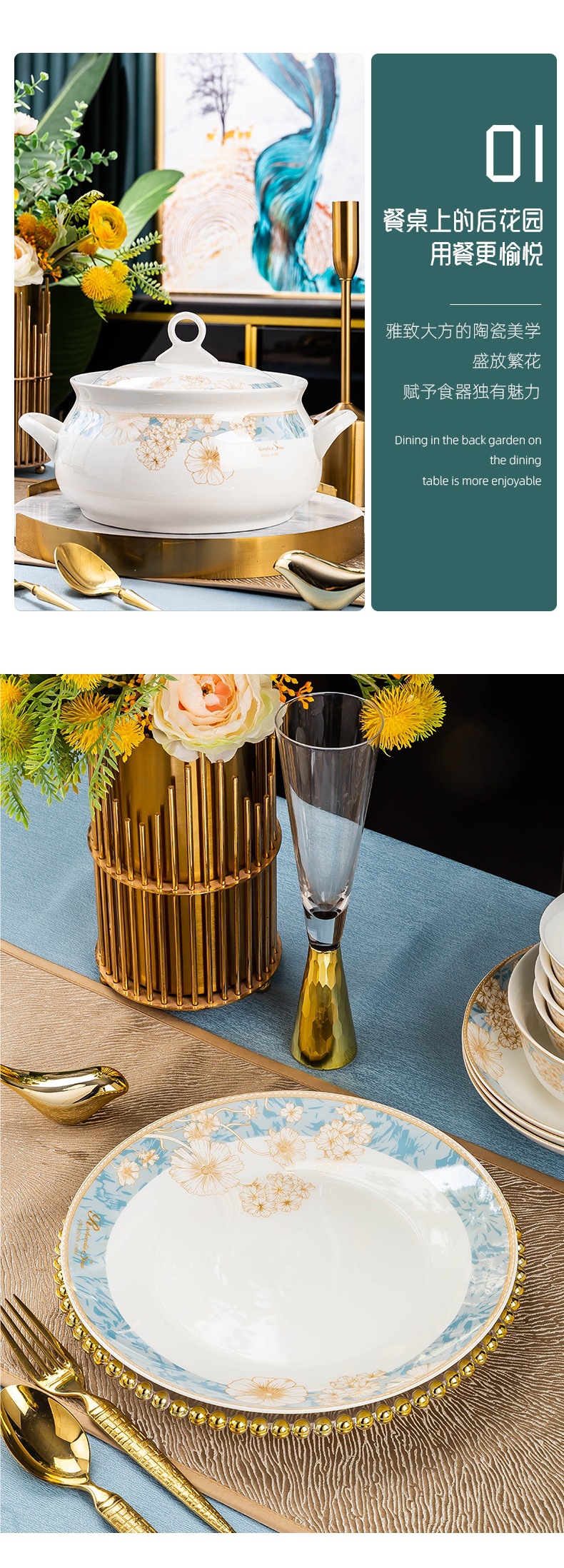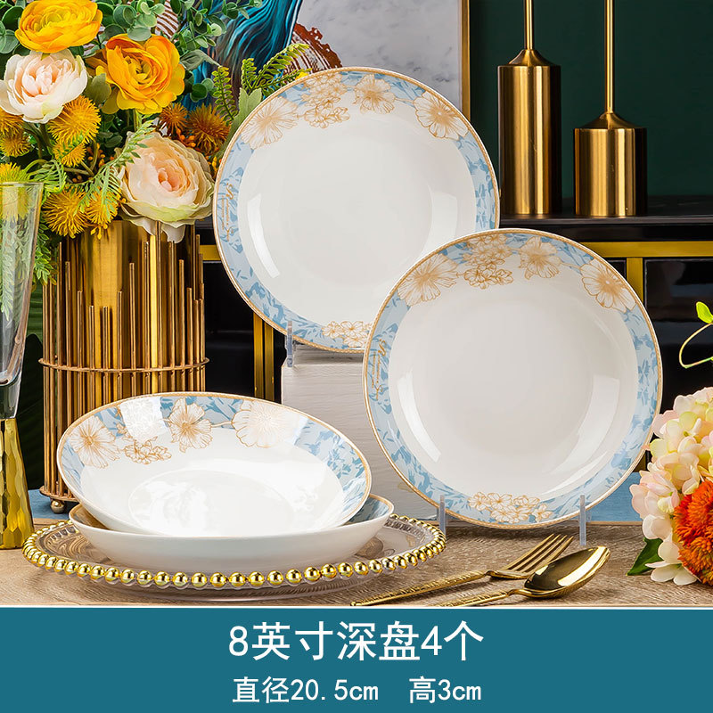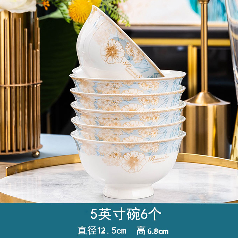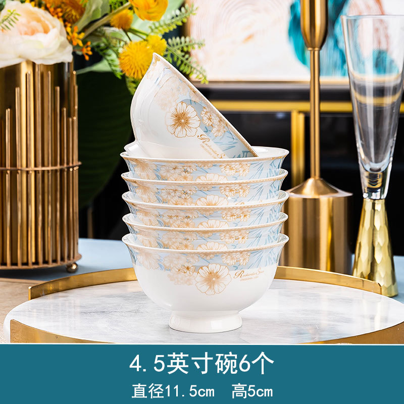 Jingdezhen 접시 가정용 2024 새로운 세라믹 식기 안티 스케일 하이 풋 보울 10 팩 다이닝 보울 플레이트 고온스토어 가기