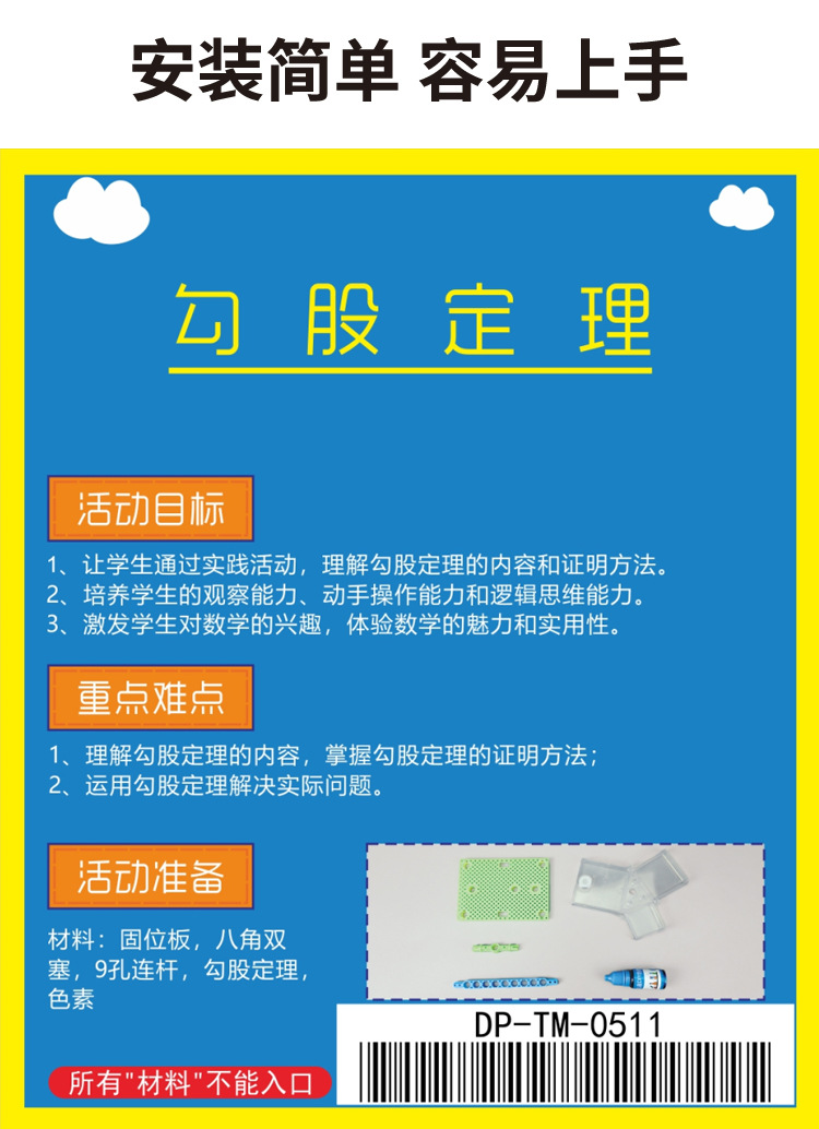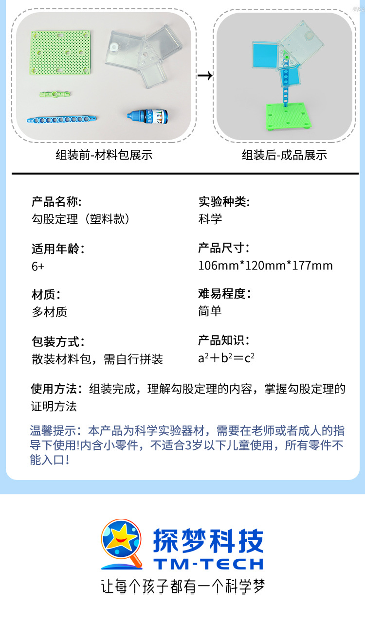 과학 및 교육 프론티어 피타고라스 정리 데모 모델 교육 과학 실험 장비 인식 초등학생 diy 수제스토어 가기