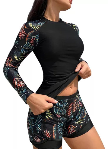 2025 유럽 및 미국 해외 직구 수영복 긴팔 디지털 프린트 배색 보수적인 비키니 사각팬티 수영복 해외 직구 인기 상품