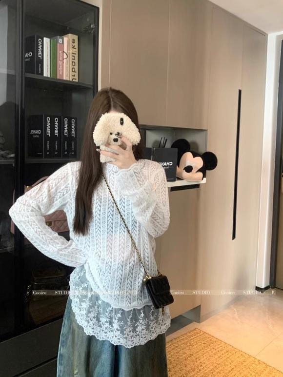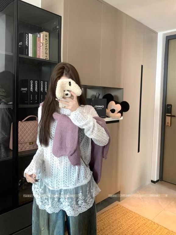 디자인 센스 니쉬 화이트 모크 칼라 레이스 셔츠 여성의 가을과 겨울 서양식 연령 감소 느슨한 중간 길이 이너 탑스토어 가기